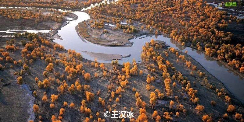 兩岸的胡楊沿河道走勢分佈,