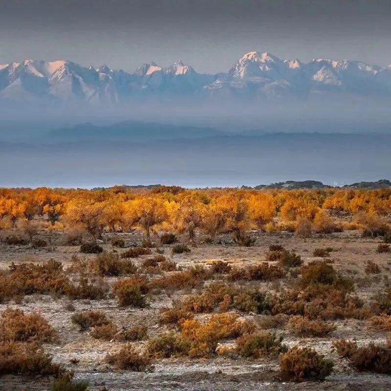 胡楊林南靠巍巍崑崙山脈,