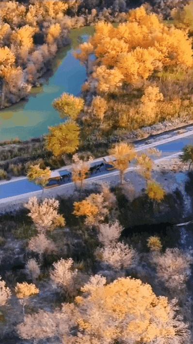 時不時會出現成簇、成片的胡楊風景林,