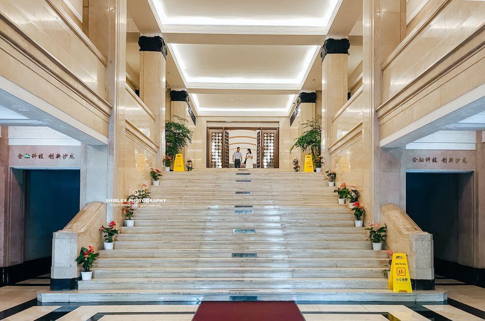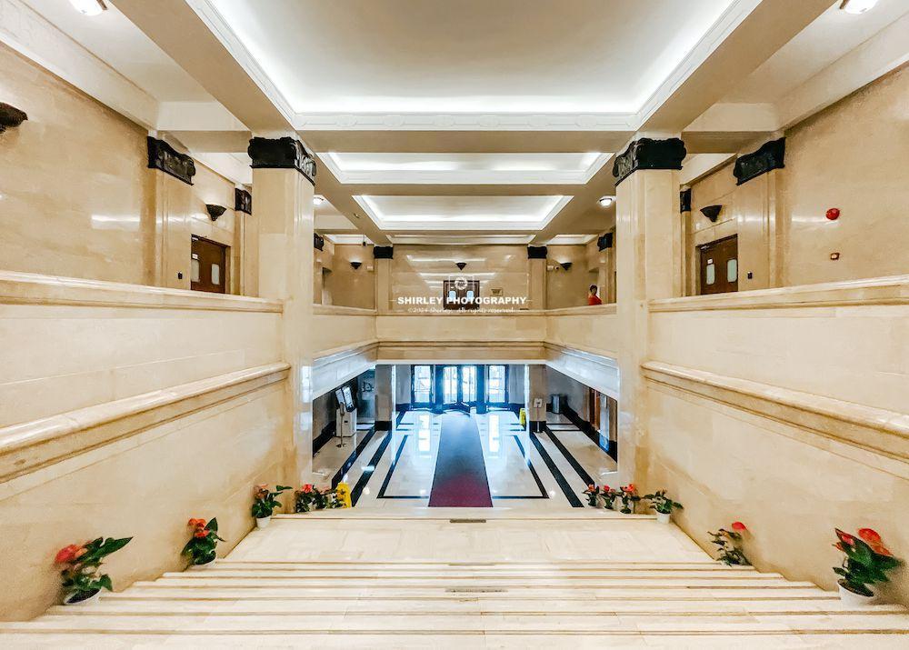 走進大樓內部,1樓的進廳和裏面的營業大廳是這棟建築的精華所在。尤其是進廳大門的大理石制的門套、地面、扶手、樓梯、欄板、頂板上的線腳、古典造型的銅質壁燈等,都洋溢着優雅、莊重的古典風格。