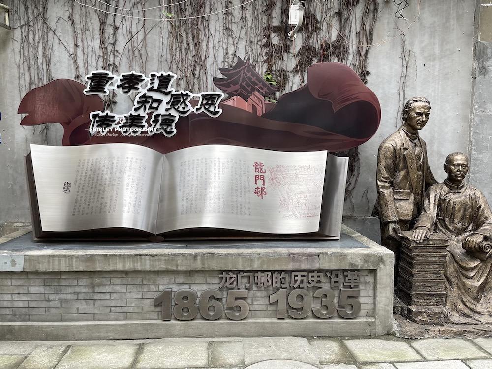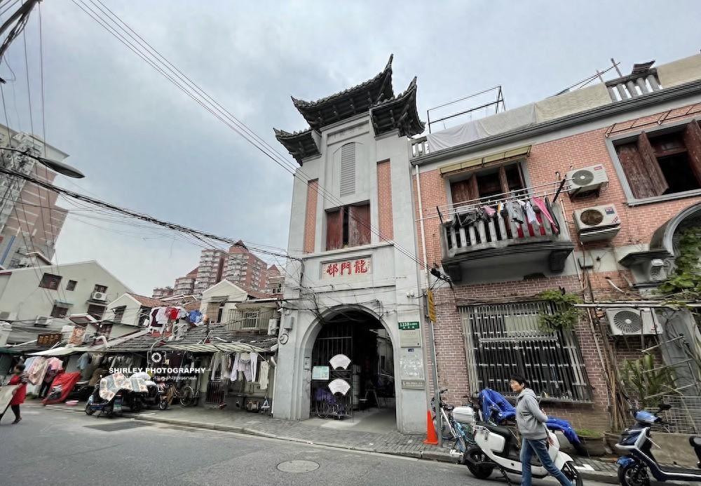 現在的龍門邨,雖然知道的人已經不多,但是經過此地,還是能從入口處那個飛檐翹角的中式傳統門樓,就能看出此地的不一般。白色外牆中間開一扇硃紅木排窗,清晰地標識“1935”、“龍門村”。這三個大字是由出身於安徽休寧的書法家、曾任上海文史館館員的朱曙先生在1935年題寫的。這座古色古香門樓矗立在老城廂尋常的低矮建築間,視覺上對比感強烈。
