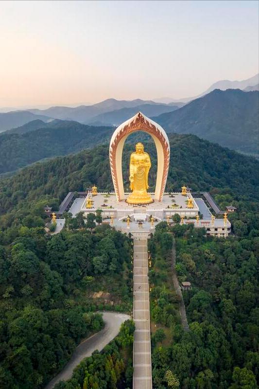 新造的東林寺還擁有全國最高的阿彌陀佛像——東林大佛,高48米。佛像周邊都是唐風建築,意境滿滿。