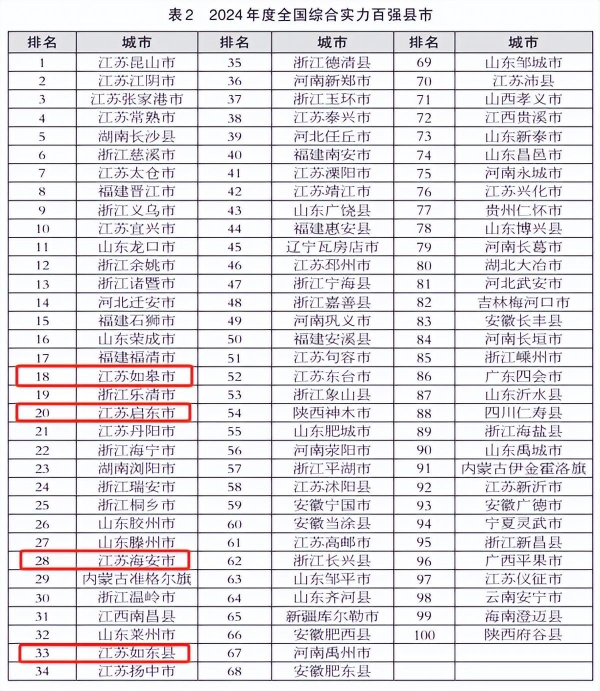 南通的散裝也也源於縣域經濟的強大,江蘇有“十三太保”,南通也有“七虎”,各個縣區GDP均突破千億,下轄6縣市區均是全國百強縣(區),名列前35。(2024年數據)