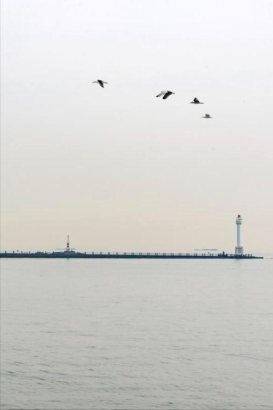 啓東圓陀角向東延伸去,是黃海和東海的分界線。長江匯入大海時,三水交匯,顏色各異,蔚爲壯觀。