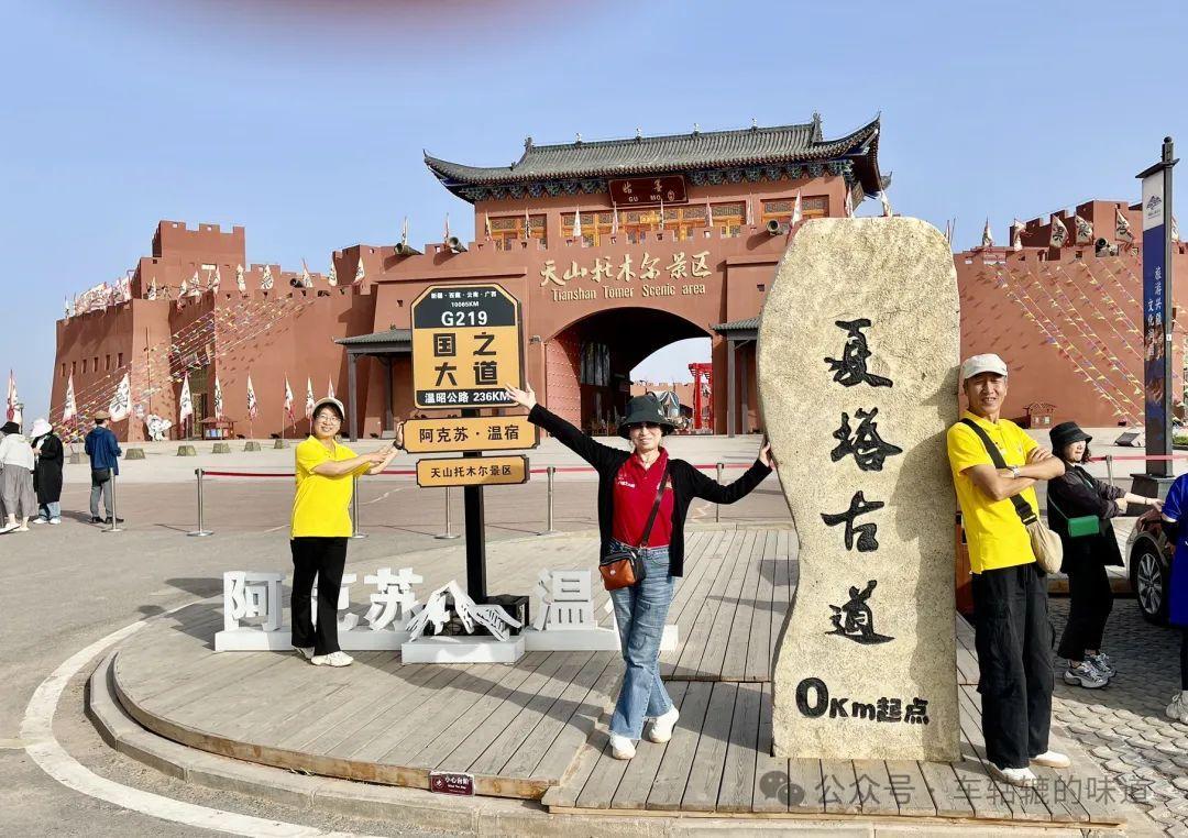 9:30出發,前往溫宿縣托木爾大峽谷,一小時左右車程。在離景區還很遠的地方修了這麼一個打卡地。