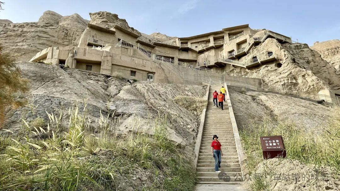千佛洞目前只開放了6個窟,買了門票進去後要走一大段路,到了山下再排隊,10個人一組進去,水、相機、包等物品都不能帶進去,必須暫存。還要爬上那個高高的樓梯。