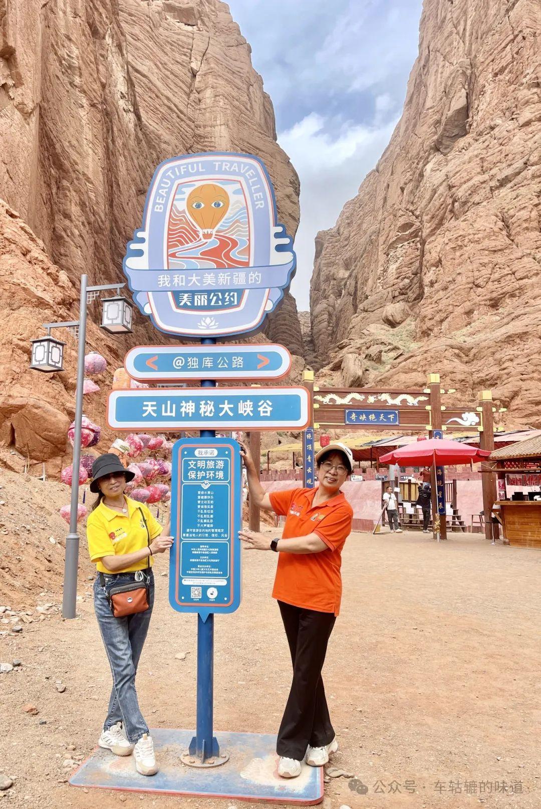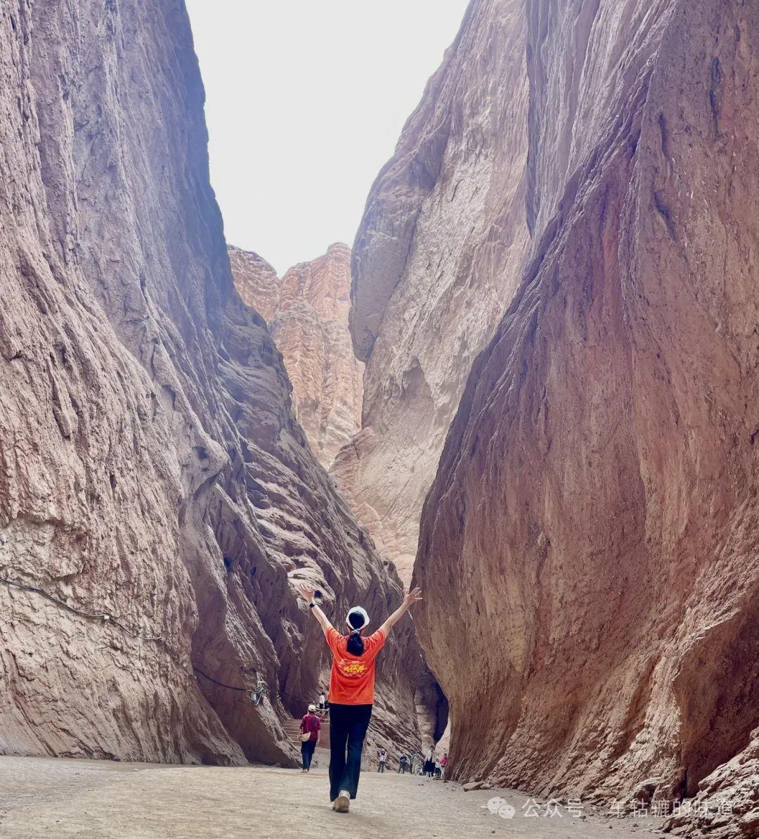行程不久就到了天山神祕大峽谷。大峽谷全長5公里多,深一般150-200米,峽谷最窄處僅1.2米,呈典型的地縫式隘谷。天山神祕大峽谷和托木爾大峽谷都很漂亮很震撼,天山大峽谷山體之間狹窄一些,落石地方很多,感覺更危險一點。