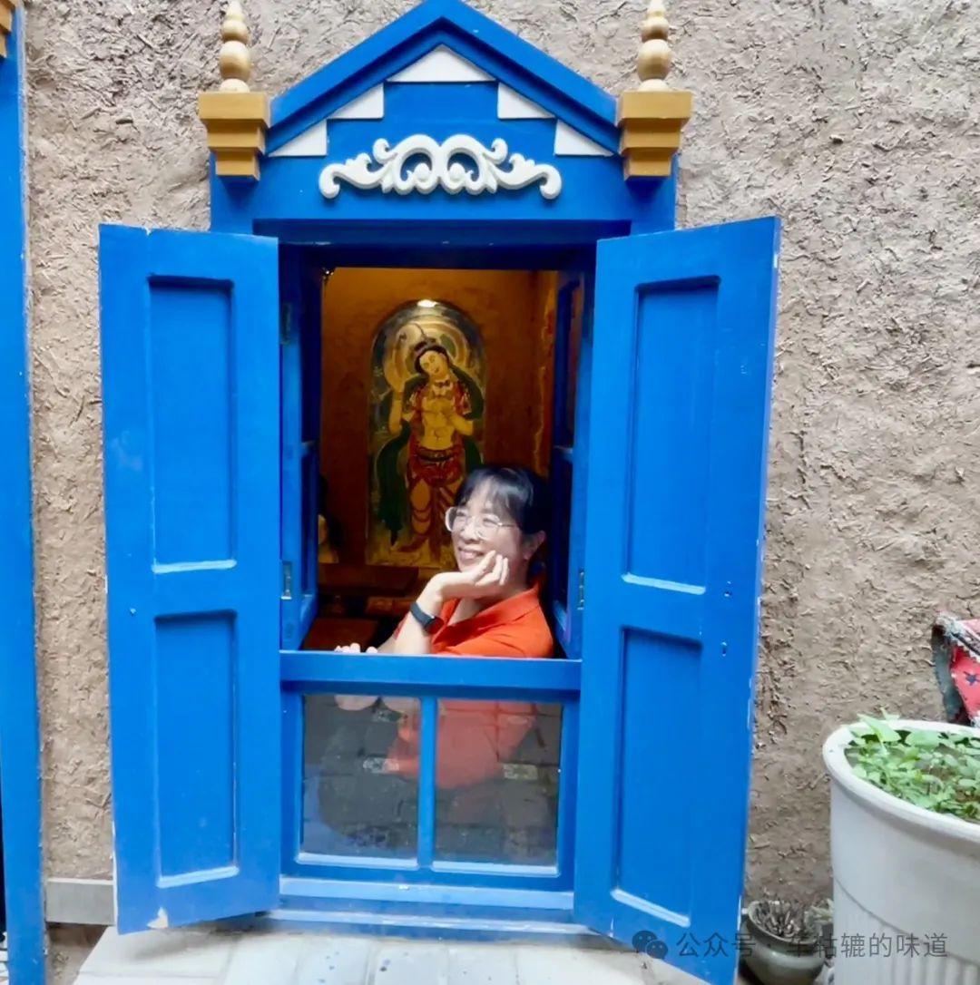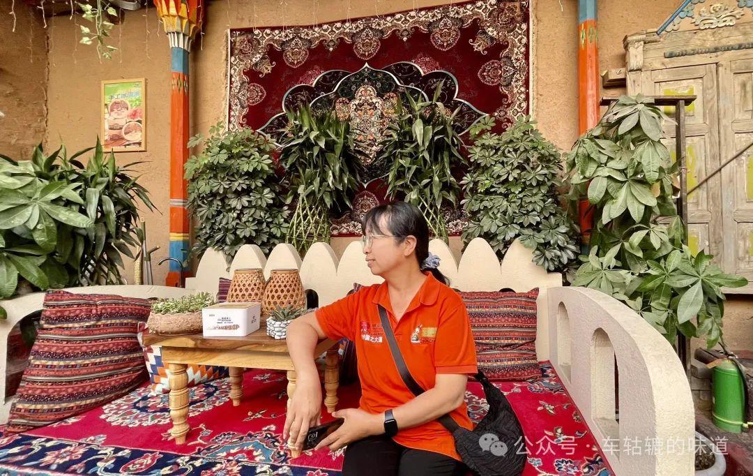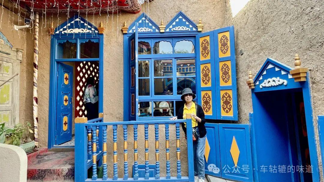 早上10點,我們先去庫車王府。王府在老城的幽深處,兩邊街道是花門一條街。五彩斑斕的門樓、裝飾華麗的藍色廊桂,構成了獨特的維吾爾族風情。