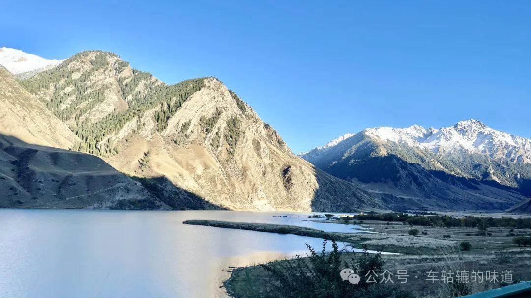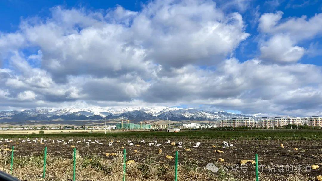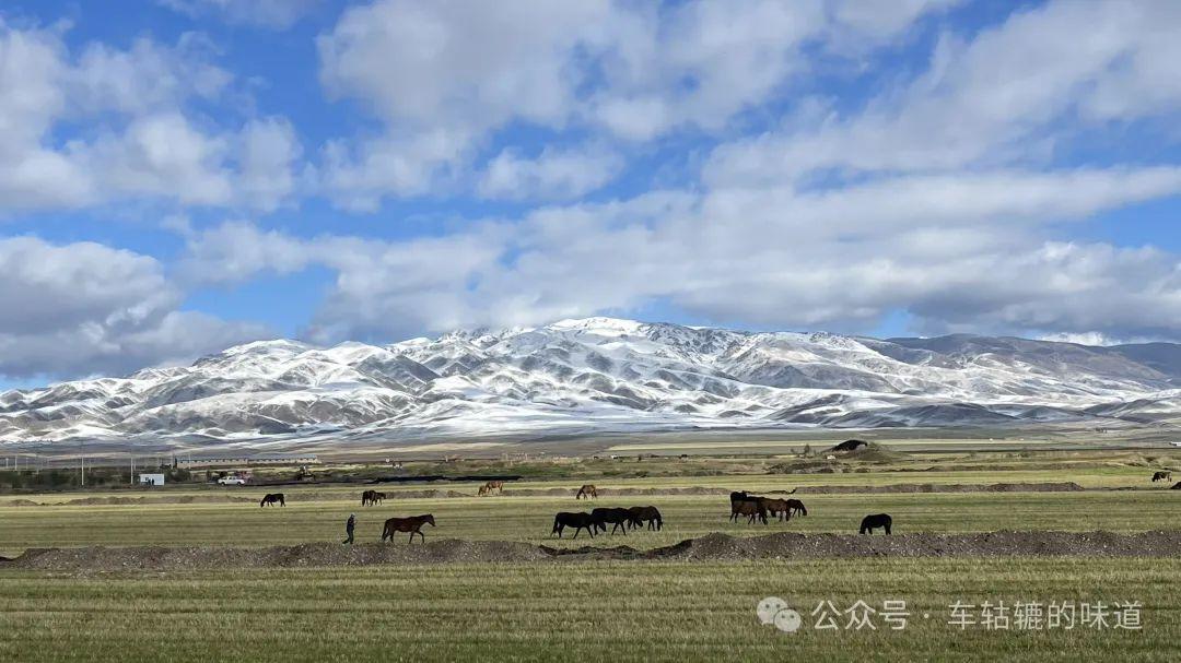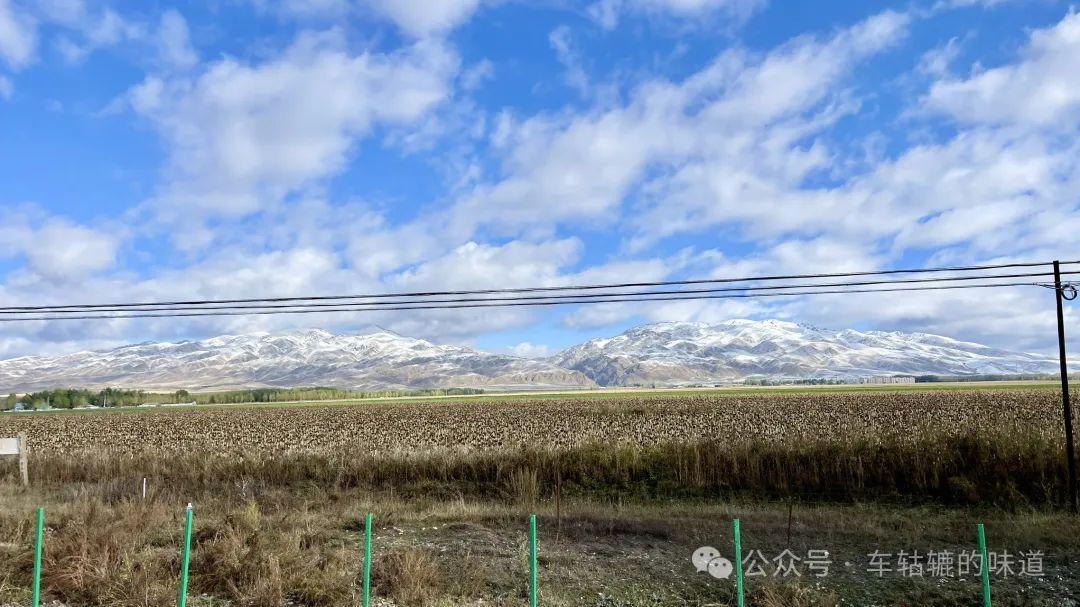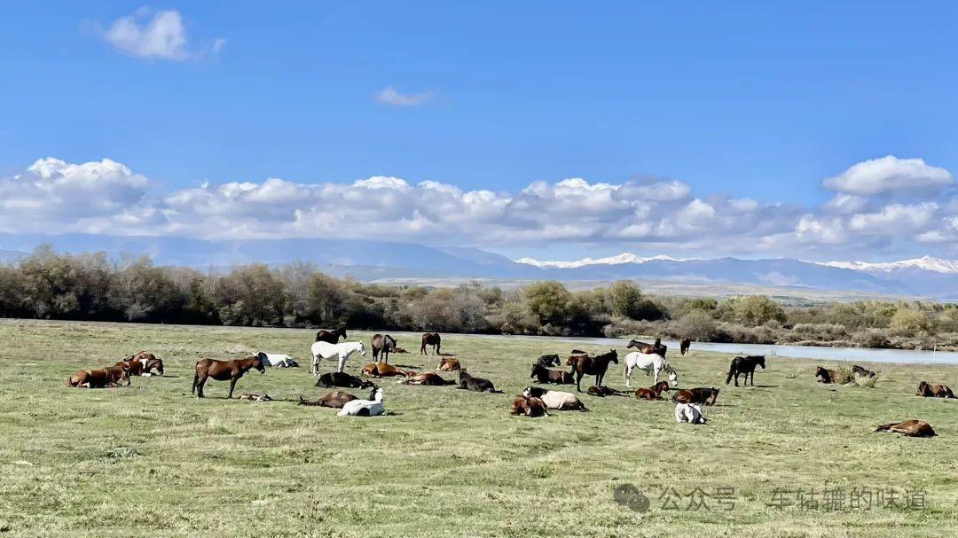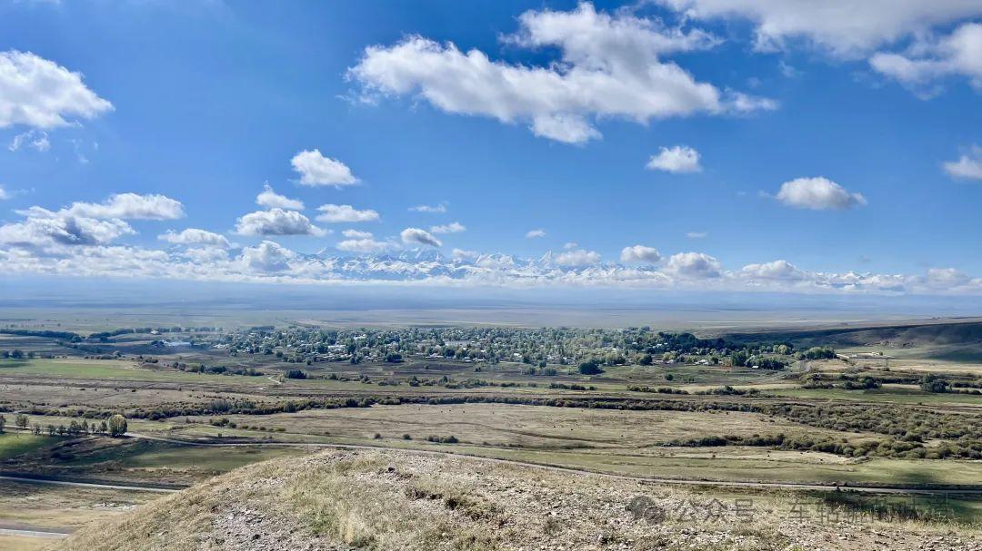 今天前往昭蘇,路途不遠,主要是在昭蘇附近玩。雨後的天氣非常好,天空湛藍如寶石,潔白的雲朵像棉花糖般飄浮着,與遠處連綿起伏的雪山相映成趣。