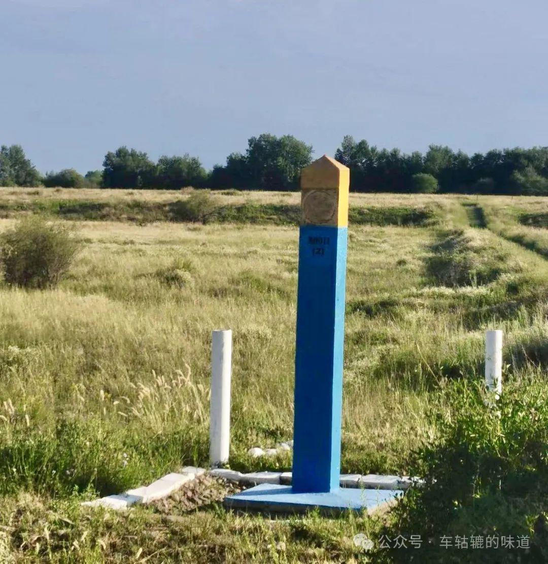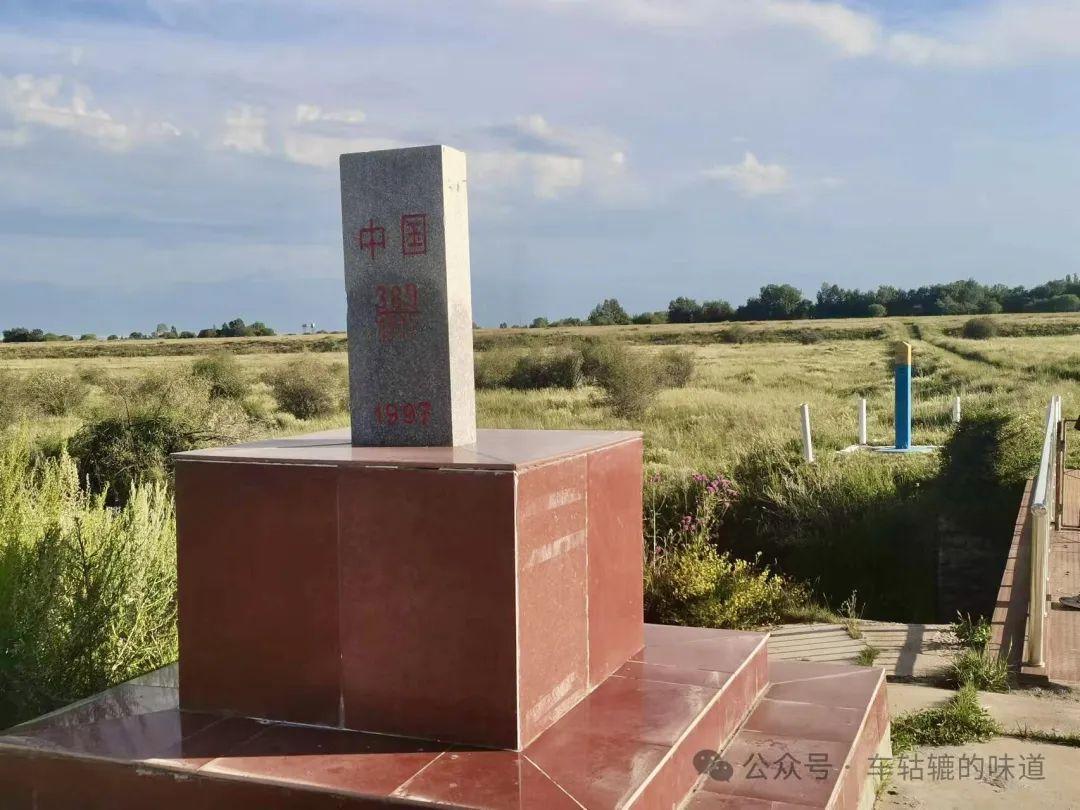中哈邊境的界碑,我們的界碑大理石基座,哈方的界碑水泥柱一根。