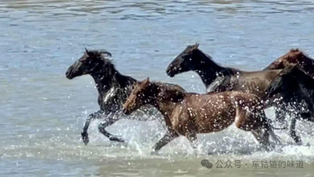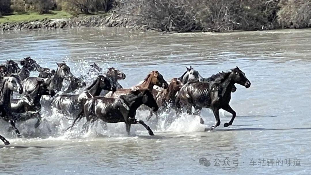 當牧馬人的哨聲響起時,一直靜靜的等待在河水中的馬兒彷彿聽到了衝鋒的號角,萬馬奔騰的場景闖入眼簾,那匹匹駿馬,身姿矯健,肌肉線條優美流暢,在陽光下閃耀着金屬般的光澤。它們奔跑的姿態是如此的豪邁,如此的自由。它們像是一羣勇敢的戰士,沒有束縛,沒有畏懼,在這裏,我們可以感受到馬兒們的勇敢與活力,也可以領略到大自然的神奇與偉大。