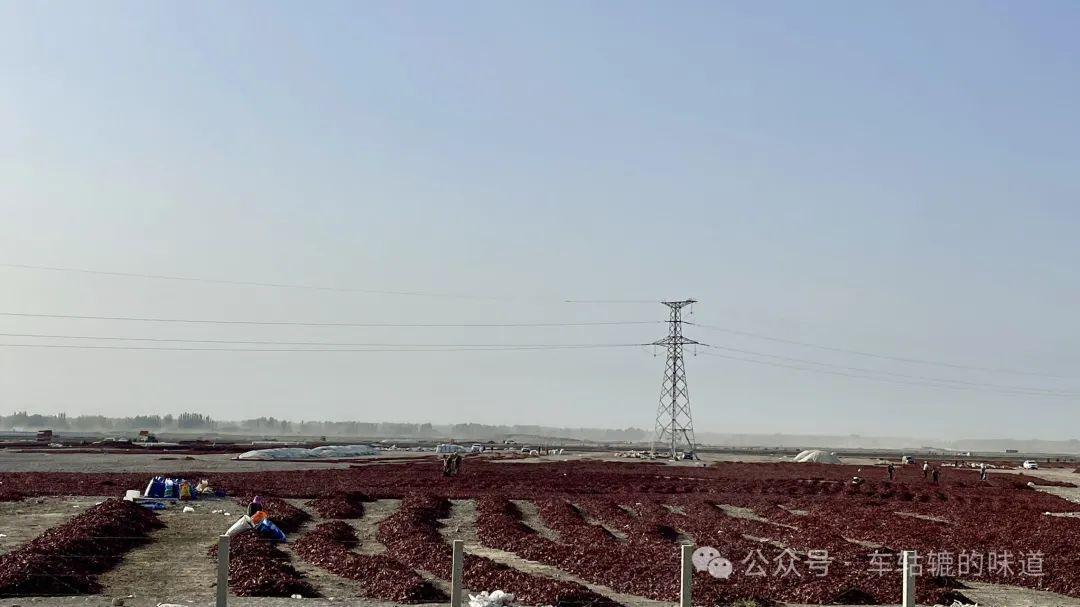 特別是沿途路上還見到了大面積晾曬紅辣椒的場面,十分壯觀!讓我們這些喫辣椒怕不辣的湖南辣妹子們大開眼界也大長見識了,新疆真的是個地大物博物產豐富的寶地啊!