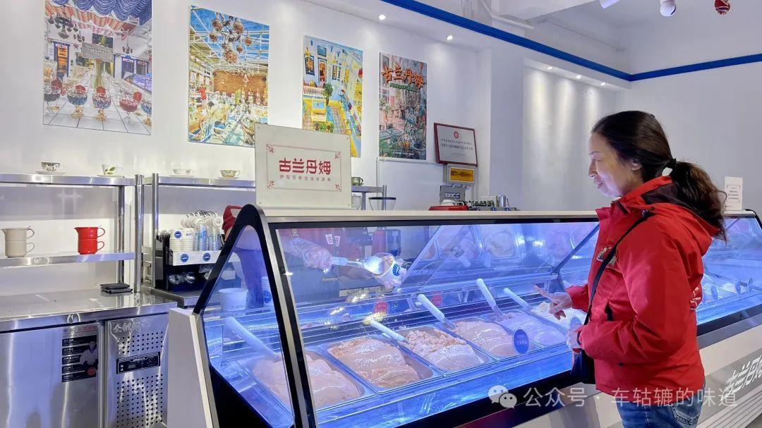 網紅的古蘭丹姆冰激淋店開着門,穿着棉襖手凍的冰冰涼的也要喫一個,還有超級多的免費乾果配料,哈哈!