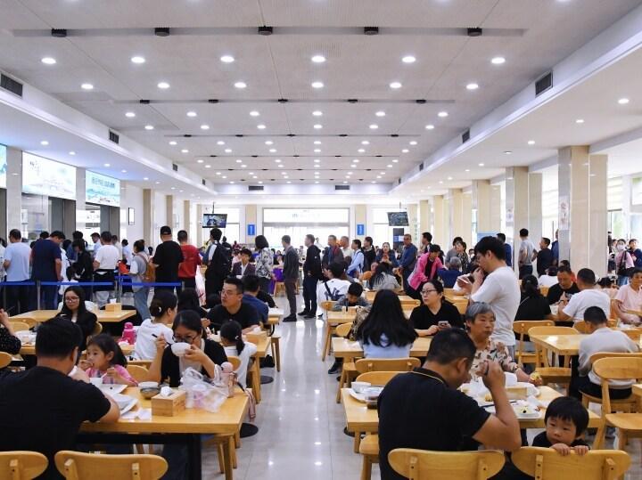 “這個時候來喫飯要排隊了,如果願意等待的話,可以先掃碼登記一下。”10月5日12時,中國旅遊報社記者剛剛走進揚州市政府西大院,便有工作人員前來提醒。此時,市政府食堂纔開餐半小時。