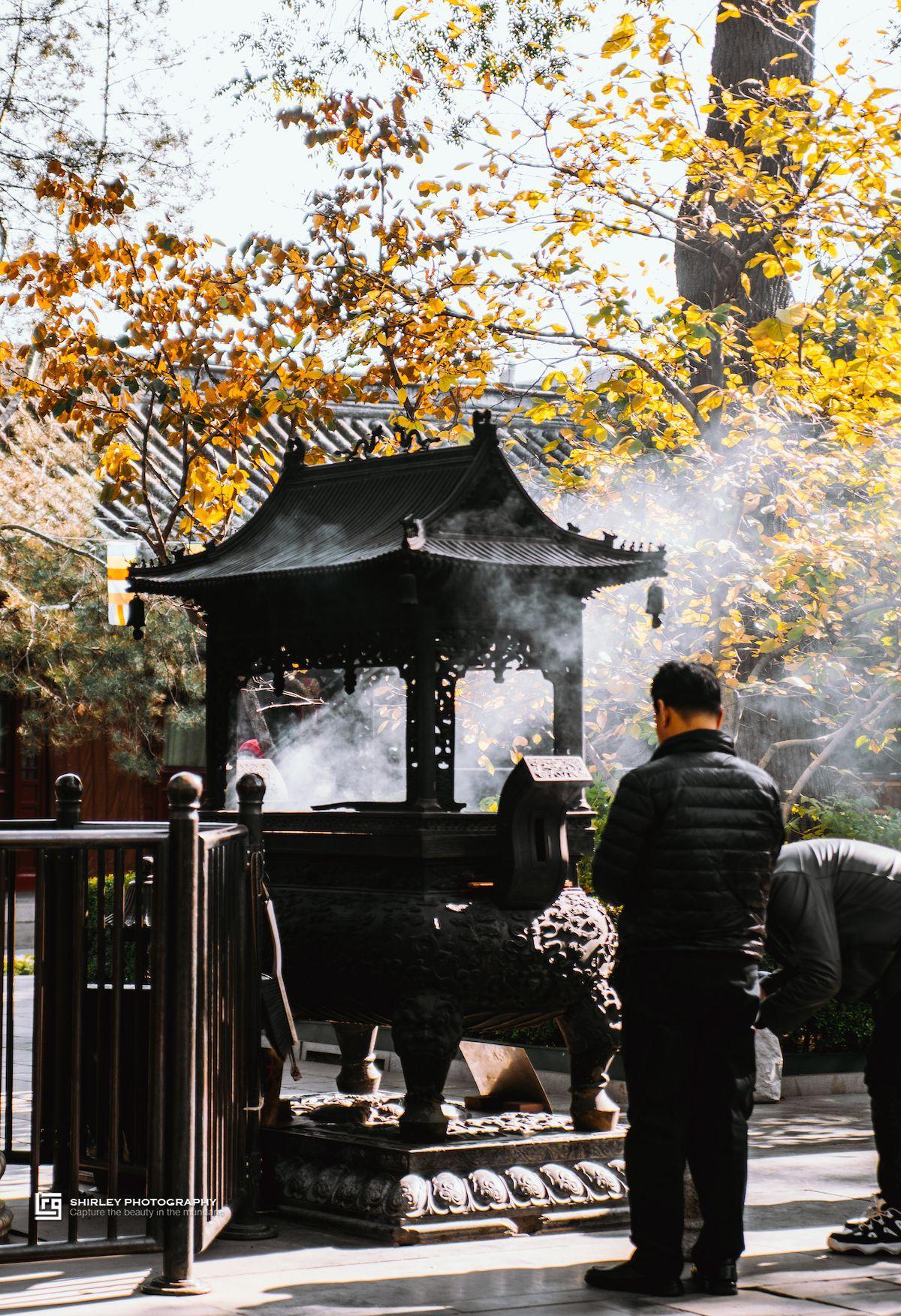 整個寺院曲徑通幽,古樹參天,比起其他寺院令人放鬆許多,適合靜坐誦經。午後的陽光穿透寺內遮天蔽日的樹蔭,打在焚燒的香爐四周,煙霧飄渺恍若仙境。離開寺院回到外面主幹道的時候,有種回到現實的錯覺。如此低調卻深藏不露的廣濟寺,可以說是北京城中一片難得的淨土。