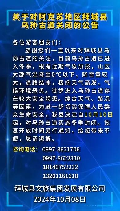 獨庫公路自6月1日開通以來,總體正常通行,計劃於10月10日20時起實施季節性封閉。公路開通期間爲廣大遊客安全便捷出行提供了服務保障,沿線部分加油站在提供加油、特產售賣等服務的同時,還免費提供開水、應急充電、應急藥品、路況諮詢、旅遊指南等服務。