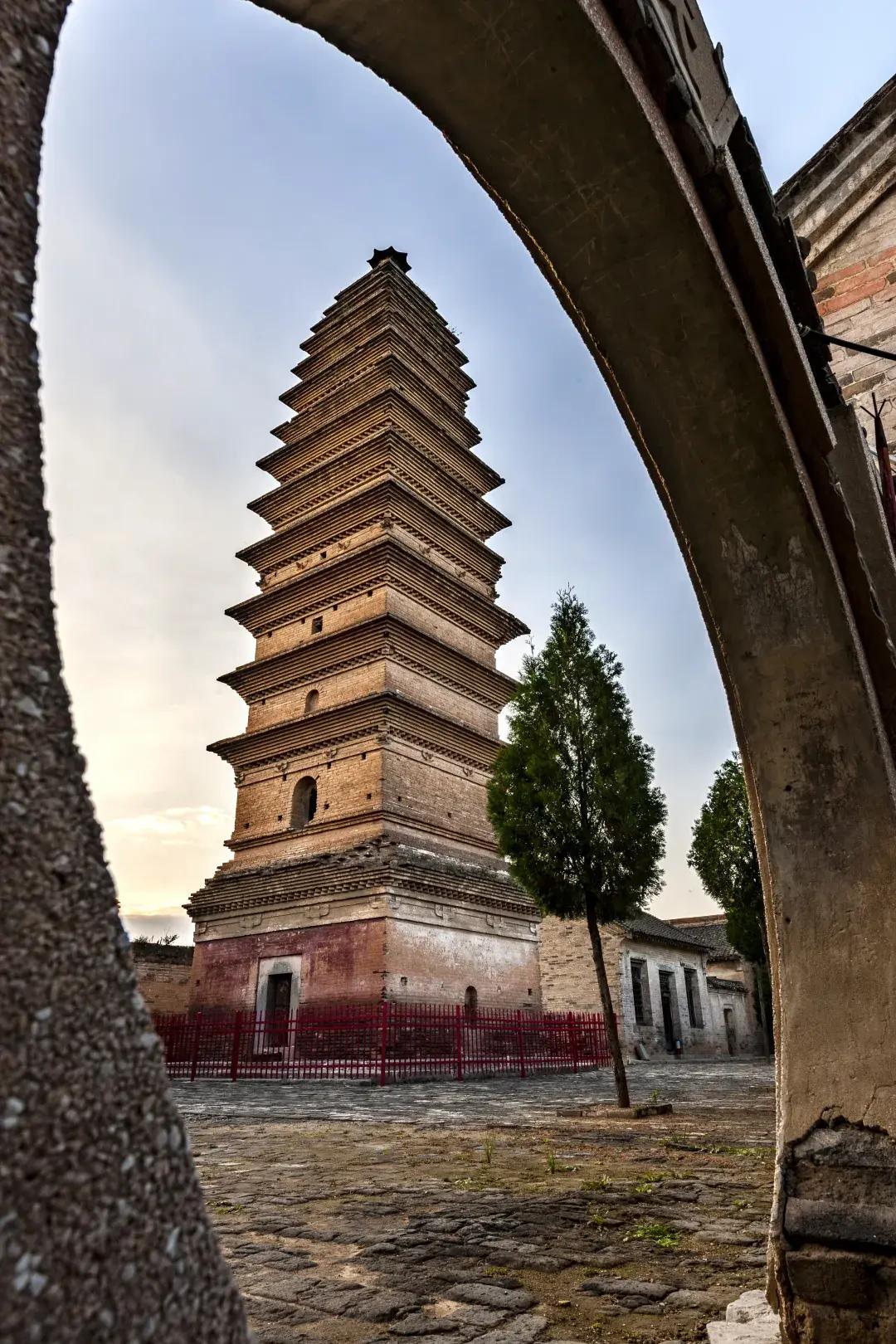 三聖瑞現塔, 是一座始建於隋代並經過金代重建的古塔。 三聖瑞現塔的建築風格與西安小雁塔相似,屬於方形密檐式磚塔,是研究遼金時期建築的重要資料。塔高約30米,共有十三層,採用密檐式結構,每層逐漸縮小,具有濃厚的唐代風格。塔的內壁和內部嵌有造像碑和佛龕,展示了豐富的歷史文化內涵。