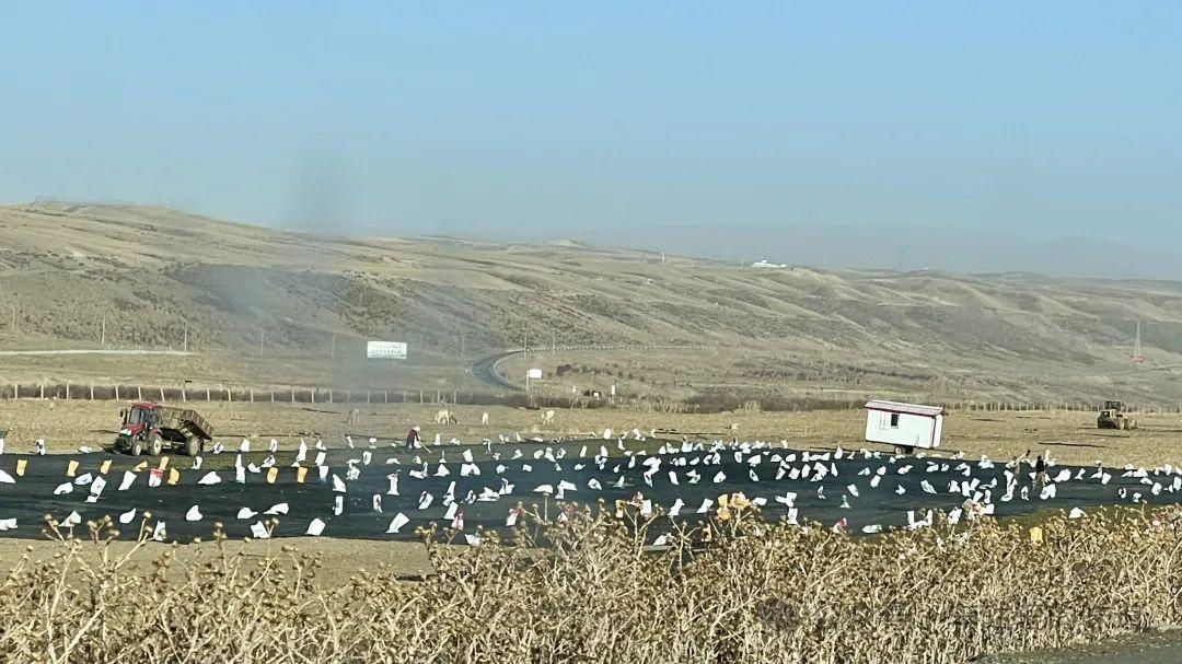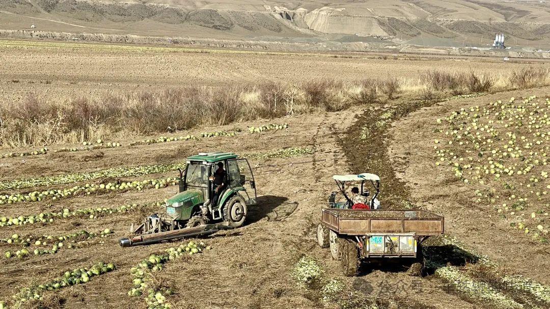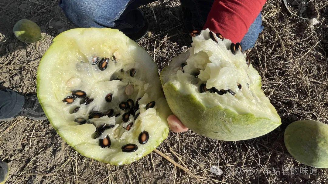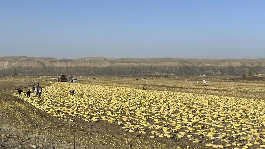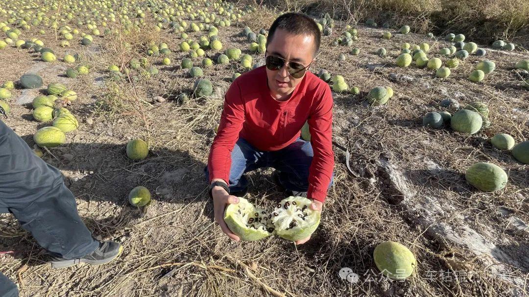 馬隊向我們介紹:西瓜南瓜(馬隊說長成長條的就叫葫蘆瓜)長大後,先讓羊羣進來把瓜秧子都喫了,把瓜留在地裏,然後再用不同的機器把瓜進行歸攏、收揀、打碎、篩選瓜子、晾曬、裝袋、運輸,全部機械化完成。打碎的瓜皮瓜瓤留在地裏是牛兒們的美食。