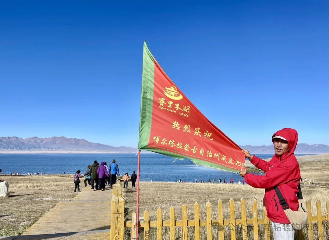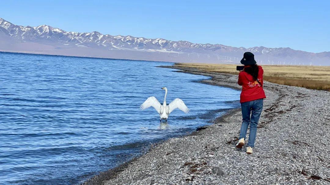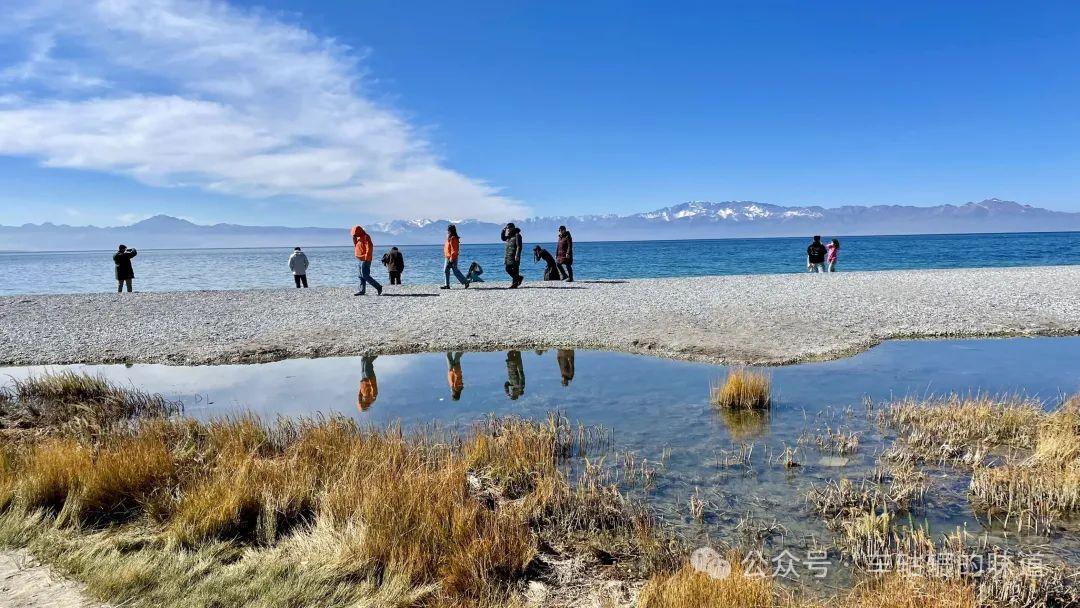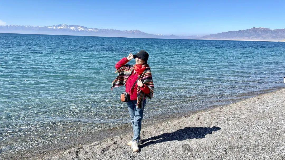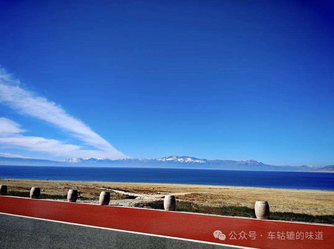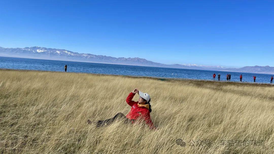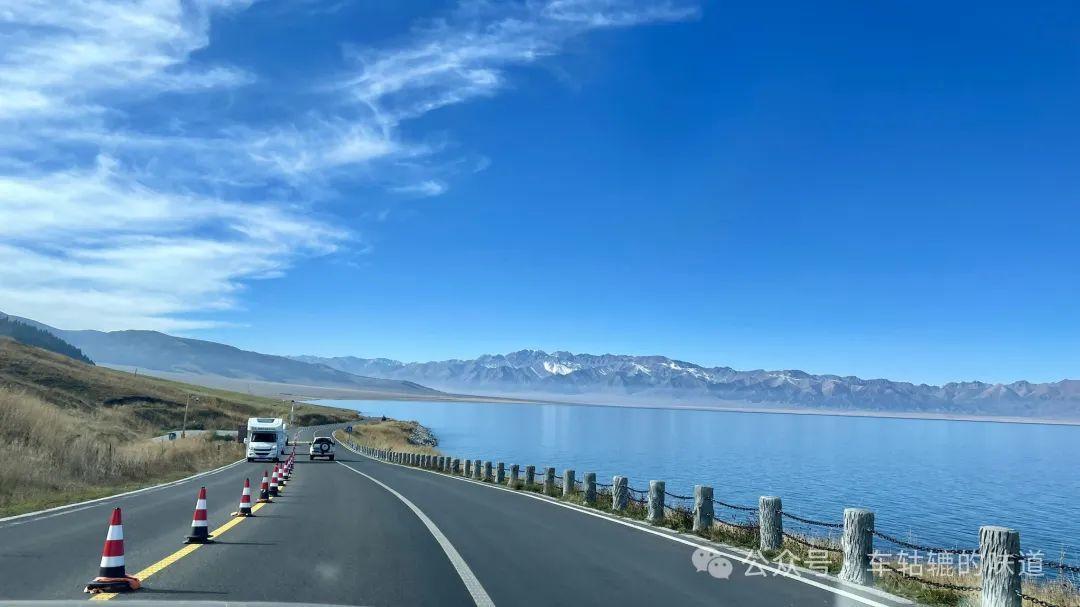 我們駕車環湖而行,只見湖水在陽光的照耀下,閃爍着璀璨的藍光,彷彿無數顆寶石鑲嵌在湖面上。四周是連綿起伏的山脈,山頂的積雪與湖水的深藍形成鮮明的對比,構成了一幅令人心動的自然畫卷。