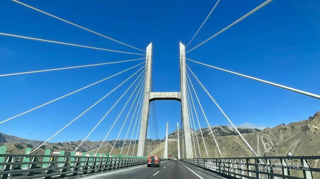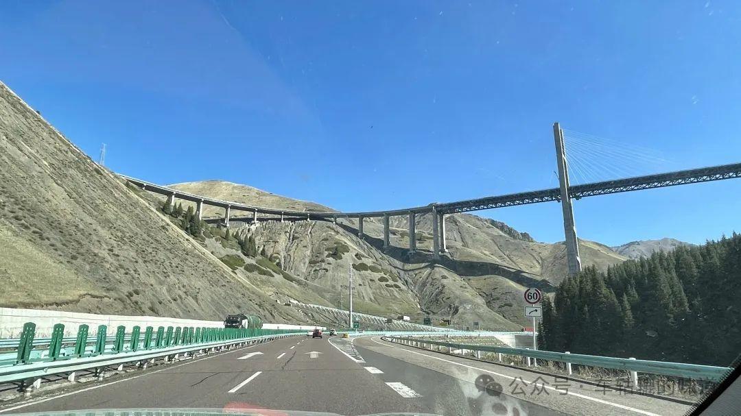 果子溝大橋是新疆公路建築史上第一座斜拉橋,也是全國公路建築史上第一座採用鋼桁架的斜拉橋。大橋全長700多米,耗資高達23.9億,被稱爲中國最土豪的大橋!