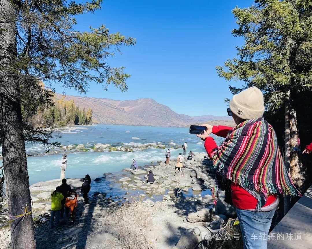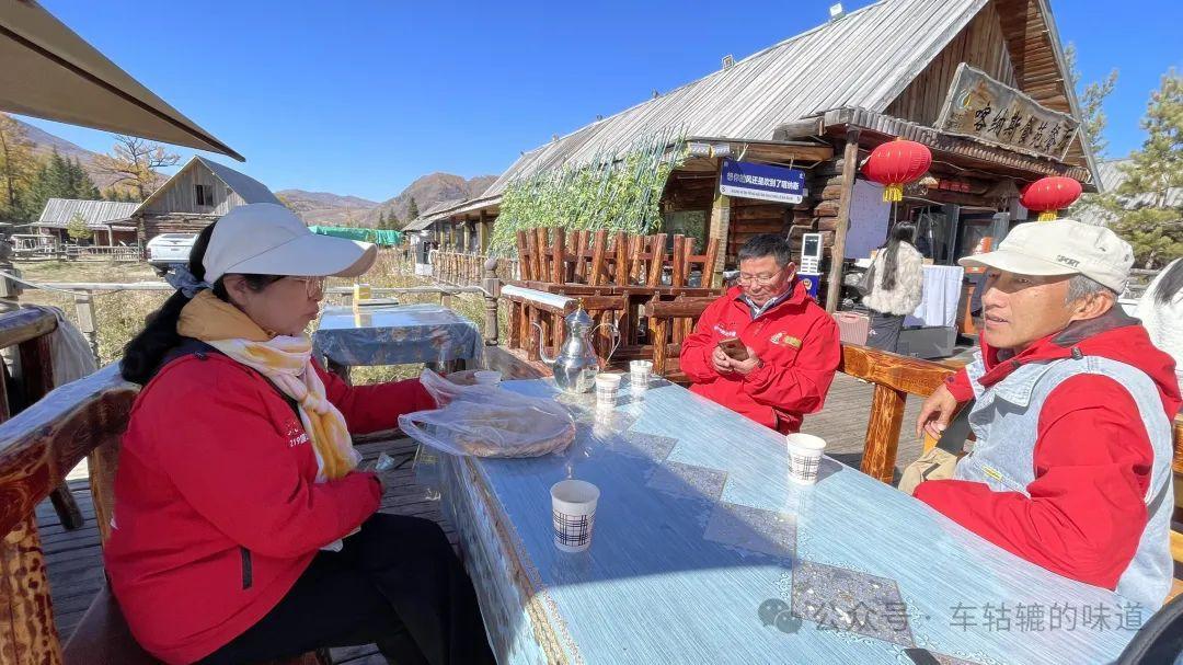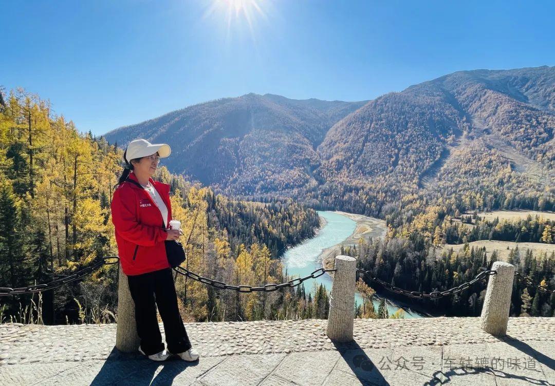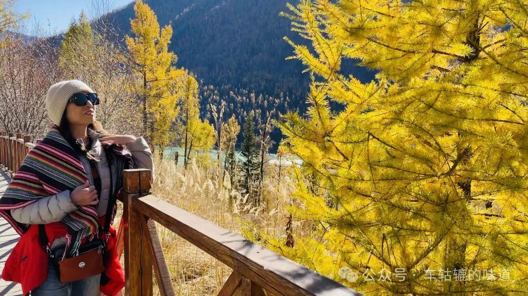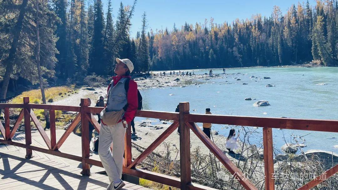 繼續前行,到達賈登峪遊客服務中心附近的住地。買票後進入景區,坐1小時景區大巴到達山上的喀納斯遊客中心。因爲前幾天這邊已經下了雪,氣溫很低,上午我們把所有冬裝全部穿上還覺得冷。不過今天的太陽還是很給力的哦!
