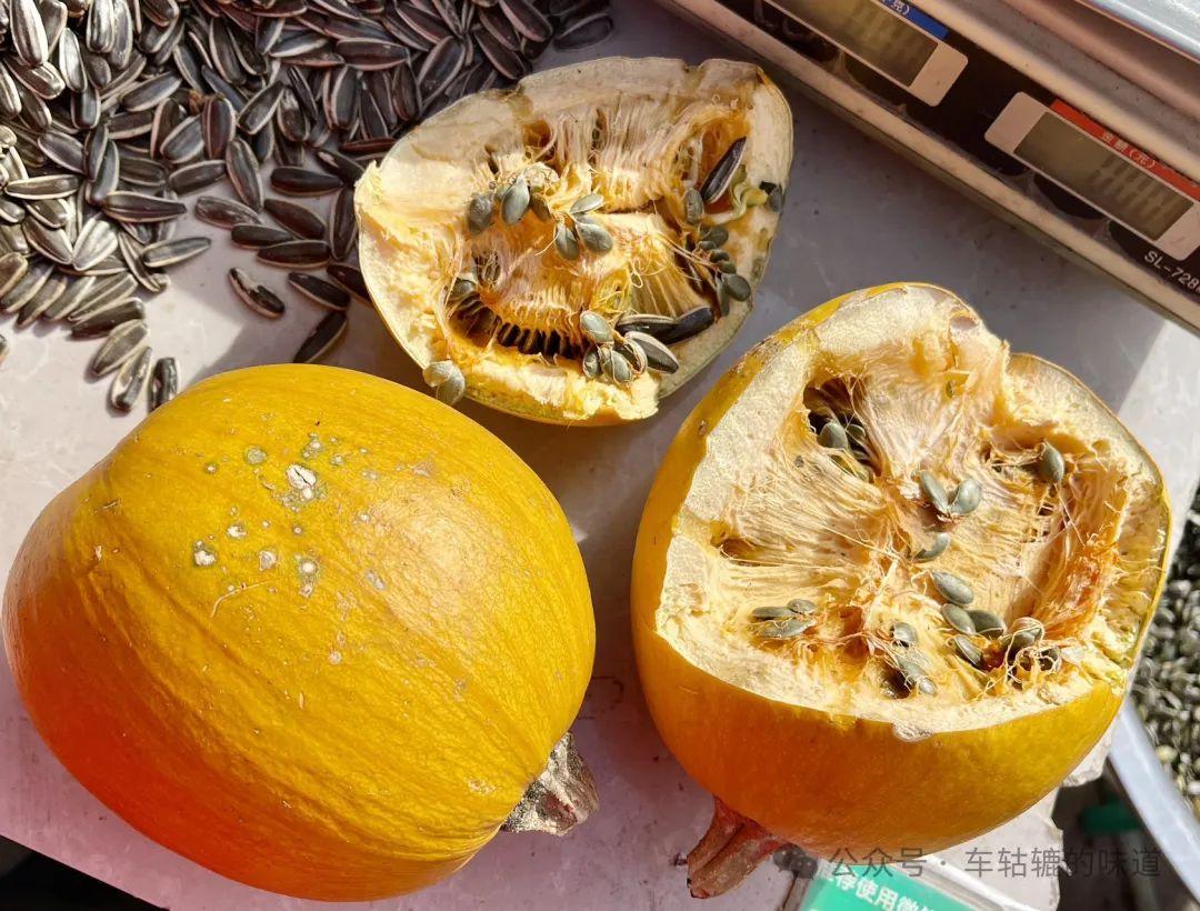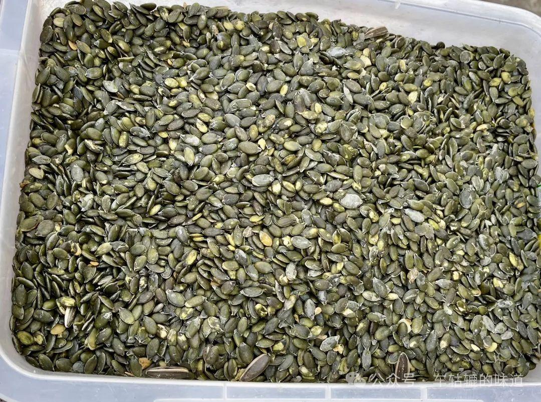 在這裏我們又長了見識,見到了一樣平時喫的很多,但從末見過的食品:無殼南瓜子。這種南瓜只能在新疆甘肅等西北地區種植。以前買這種瓜子喫還以爲是什麼專門的機器把殼剝了的呢,哈哈!