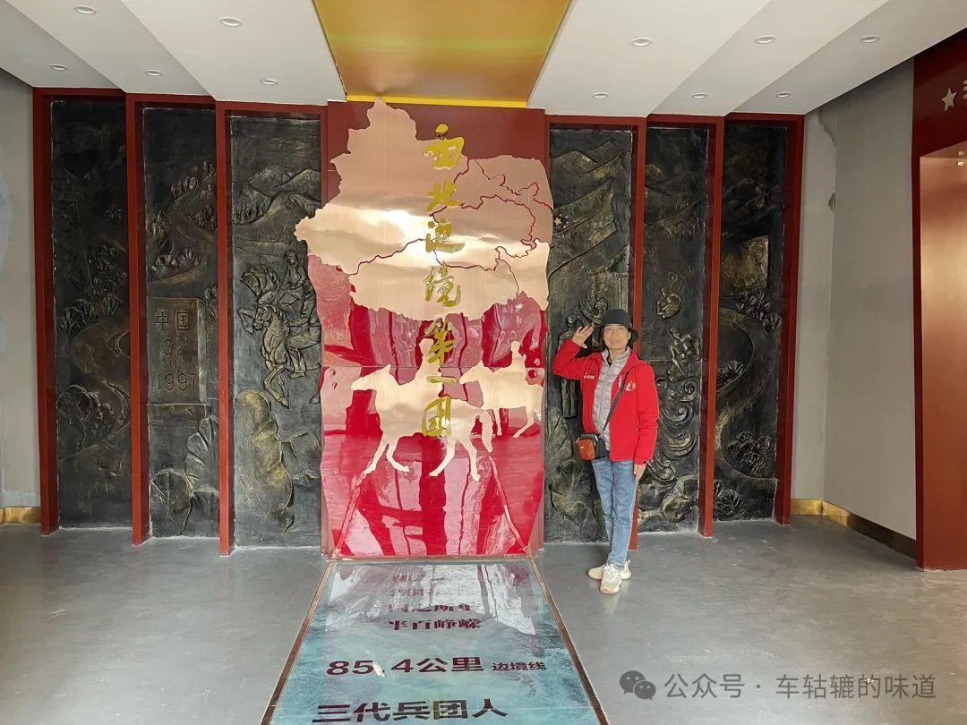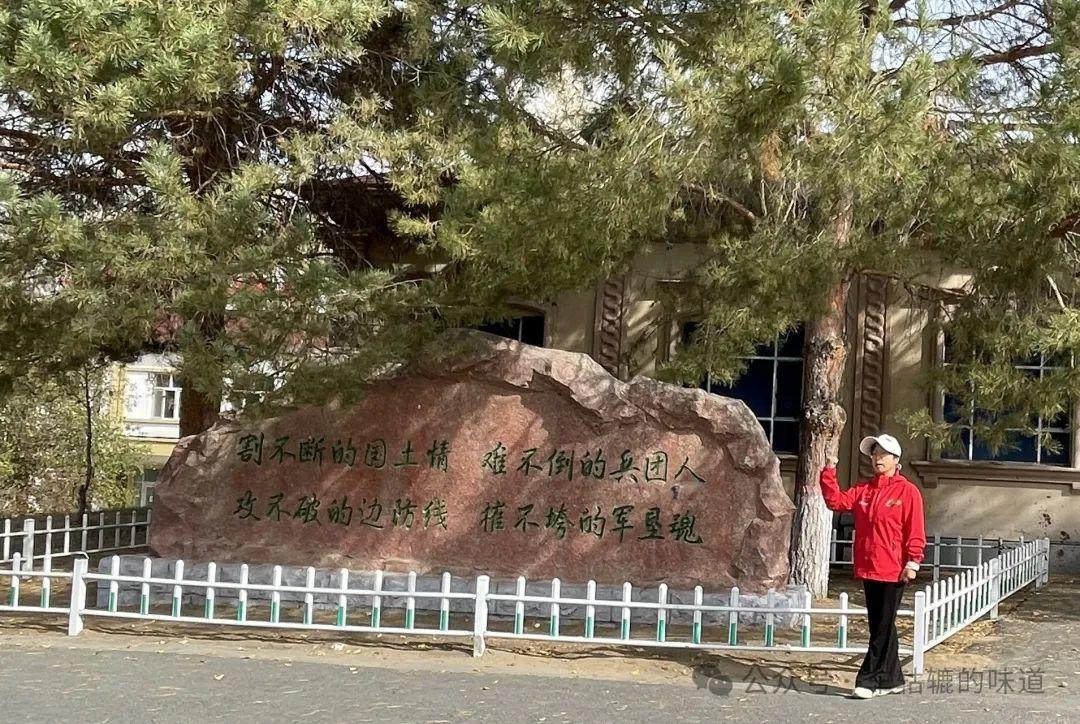第一連展覽館門口有兩塊巨石,上面寫着八句話。這八句話體現了一連所處的重要位置和兵團戰士墾邊戍邊的光榮職責和愛國情懷。他們的使命是支援、紮根、守護、建設邊疆,農時能握鋤,戰時能握槍。半個多世紀以來,這裏的人們一手持槍,一手拿鋤,一邊守衛國土,一邊開墾着這片土地。