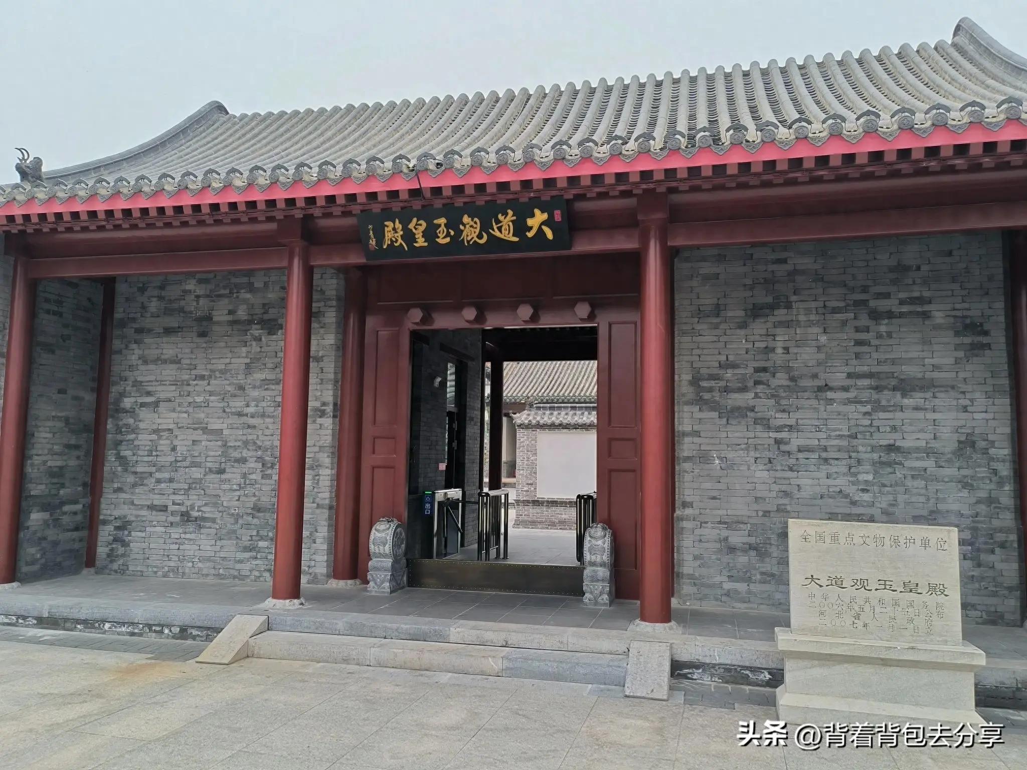 步行到達大道觀玉皇殿,南邊是遊客中心與購票窗口,購票之後,分兩次檢票,地面與地下兩個部分,地面部分是玉皇殿,現僅存玉皇殿單體建築一座,之前,大道觀規模宏大,爲中軸式羣體建築,由南向北依次爲大照壁.關帝殿.二神殿.雲神殿.玉皇殿.老君殿,玉皇殿是道教供奉玉皇大帝的場所