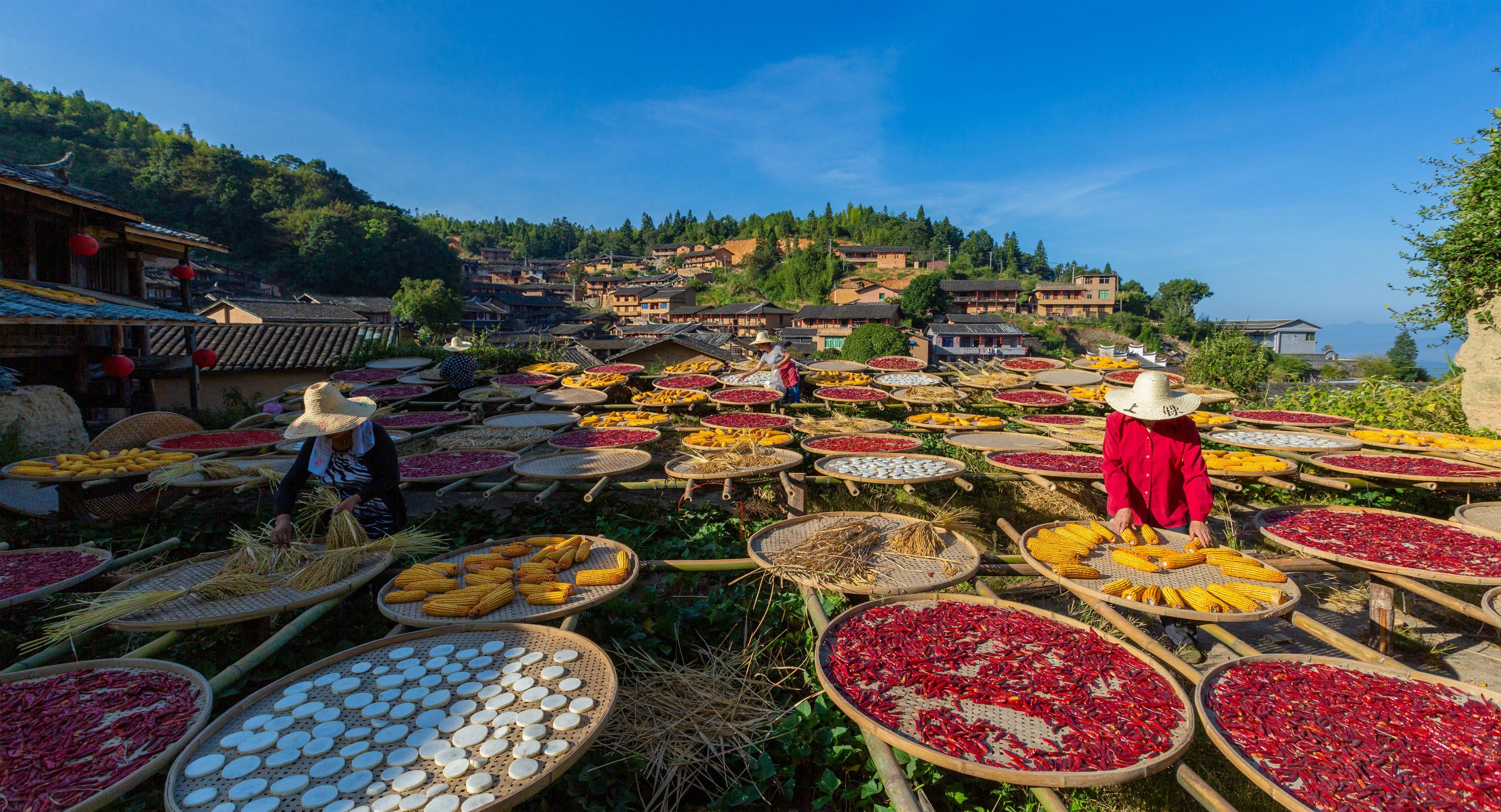 金秋十月,丹桂飄香。走進國家4A級旅遊景區三明市尤溪縣洋中鎮桂峯村,只見五彩斑斕的農作物鋪滿了古民居的屋頂、窗臺和曬架,一個個圓曬匾上鋪滿了紅彤彤的辣椒、黃澄澄的玉米,構成了一幅絢麗多彩的鄉村豐收畫卷。遊客穿梭村中,不時駐足拍照,記錄下這豐收的喜悅。