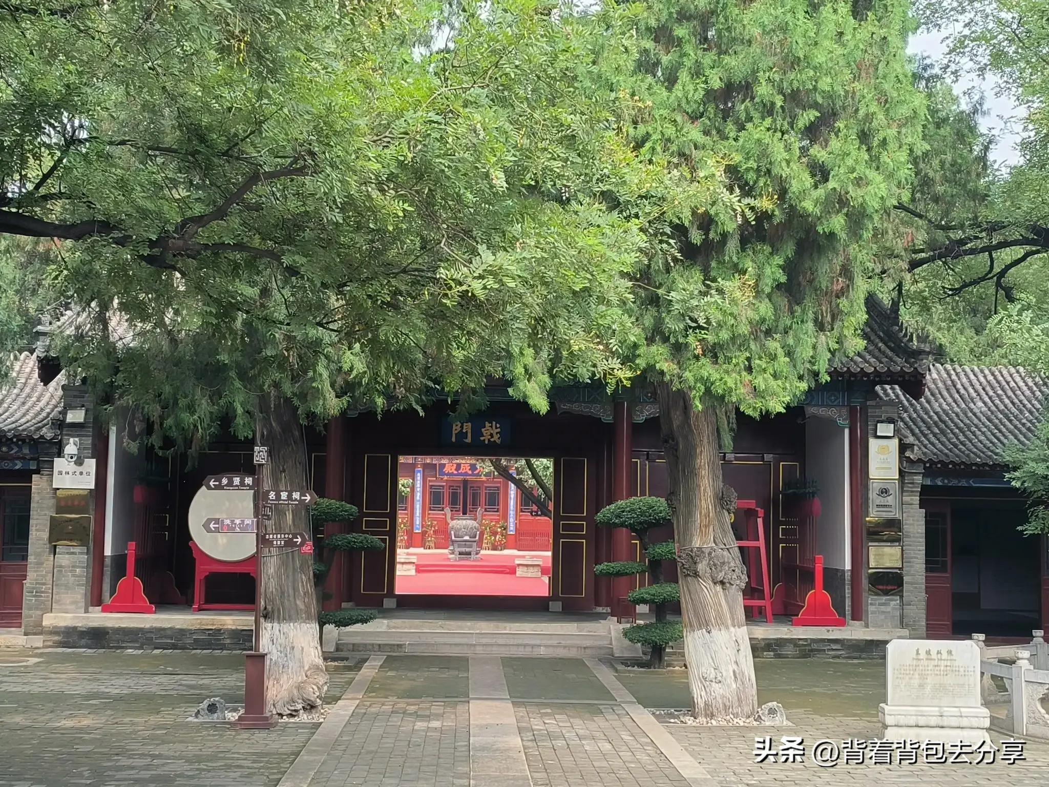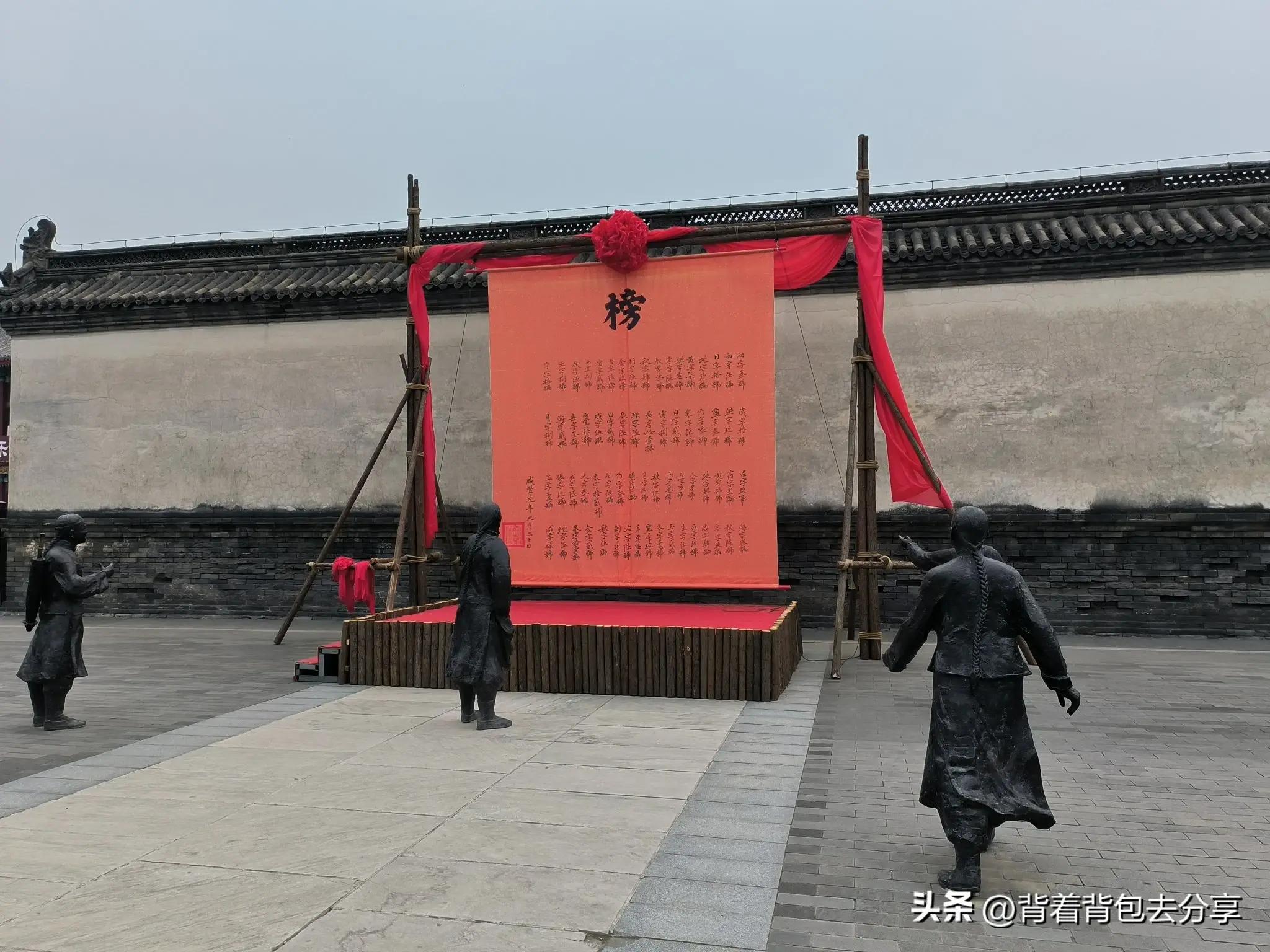 首先看到是大門與影壁,這裏可是古代考後揭榜的地方,旁邊還有人物塑像,以及皇榜的告示,每當發榜時,場面也是相當隆重,鳴炮奏樂,極爲壯觀,影壁對面是貢院的大門,兩側有兩棵古槐,又稱爲文昌槐,佇立在魁閣號舍前,據說,是乾隆皇帝六下江南,五過定州,曾到貢院慰問考生,並親手裁下了這兩棵槐樹,以示紀念,雙槐至今已有270多年的歷史