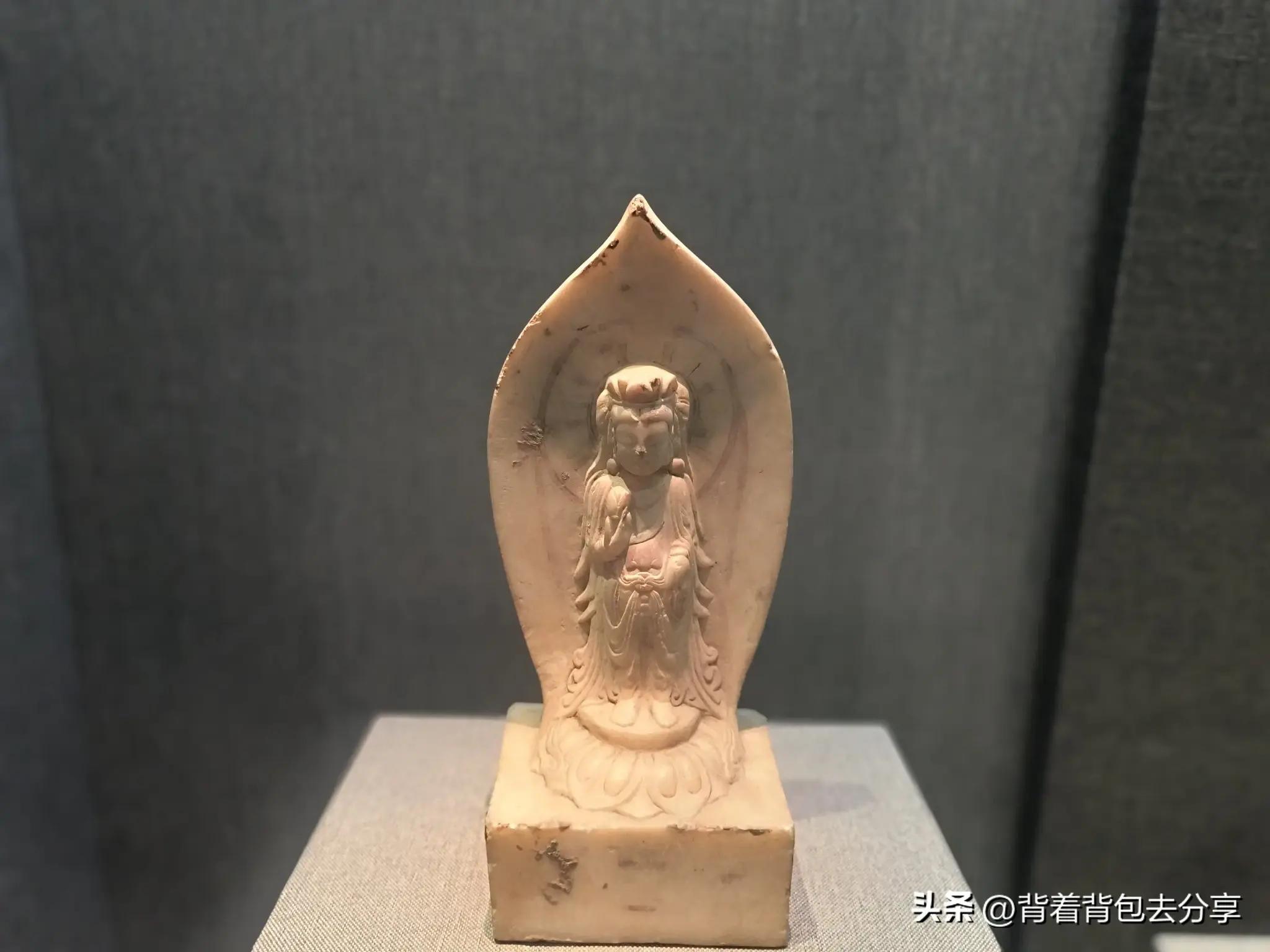 在博物館門口,簡單的拍了幾張照片,隨後,驗票進入場館,首先,看到的是正前方的大型浮雕,非常地大氣,古樸中又透露着一絲滄桑,莫名給人一種歷史的厚重感,在浮雕正中央是佛陀畫像,佛陀頭部後面是一塊大玉璧,左邊是兩個天神畫像,右邊有龍首大淨瓶,以及各種館藏的精品物件