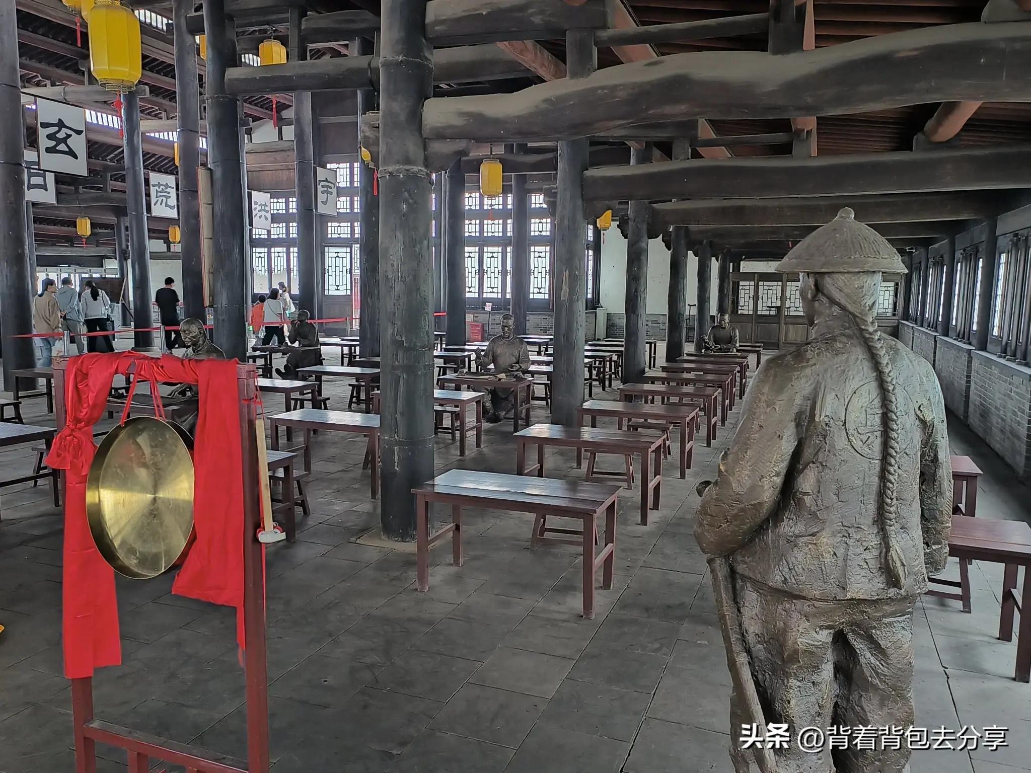 走出號舍,兩座建築之間佇立着兩根漢白玉盤龍石柱,又稱爲龍門,考生過了這道門交卷後,就有可能考取功名,柱子便有鯉魚躍龍門的吉祥寓意,表達了人們對於更高層次的追求與嚮往,對美好事物的期盼,緊緊挨着是貢院的大堂,如今的大堂,還原了當時考試官員封卷,辦公的場景,過大堂之後是二堂遺址,院落最後是後樓