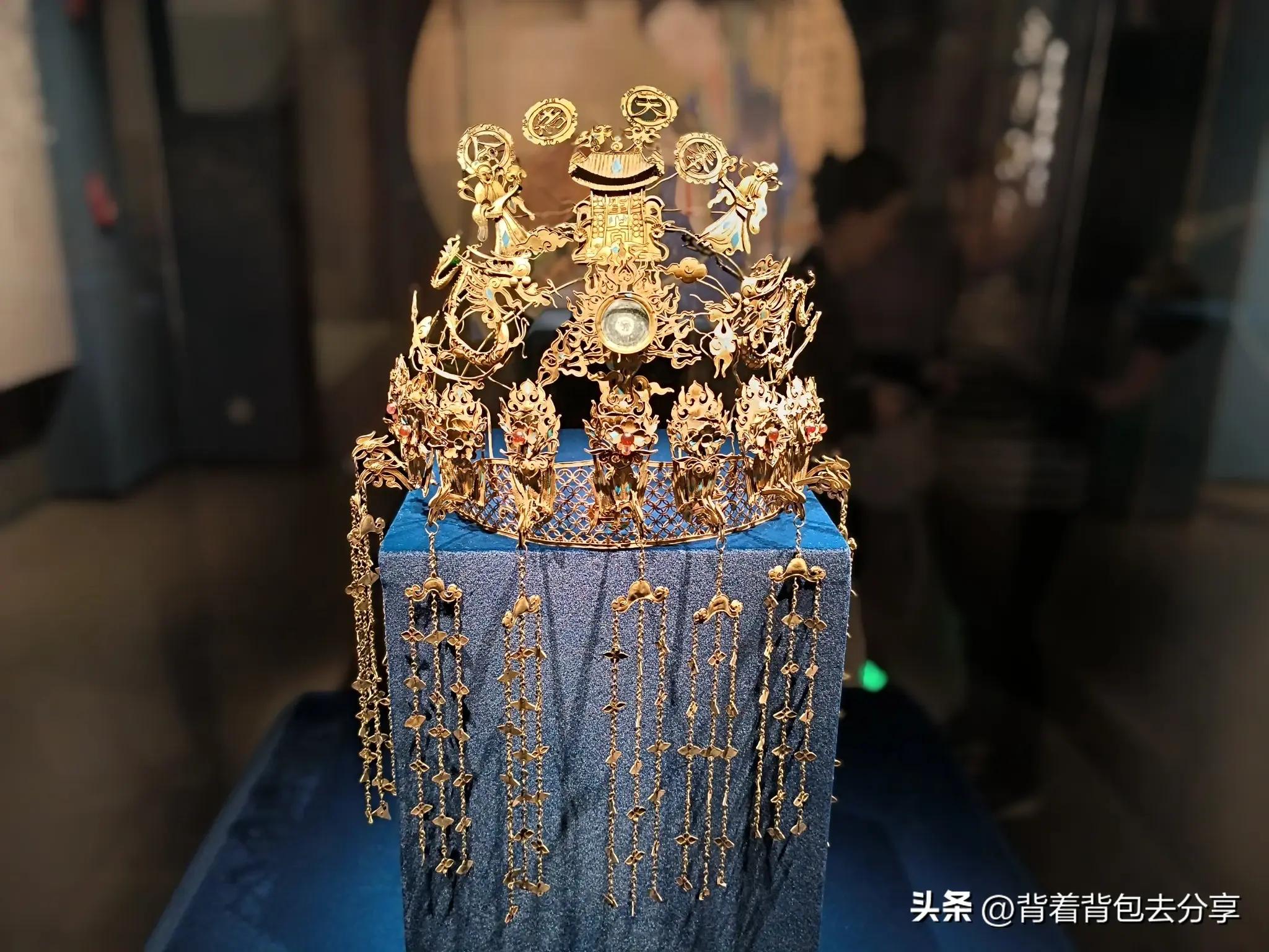 看過浮雕之後,首先來到了金翠明珠,這裏最爲耀眼的清代銀鎏金點翠嵌寶石鳳冠,冠頂有奉天誥命,中書有聖旨二字,這頂鳳冠以掐絲點翠工藝製成,非常的精美,接下來到了北朝佛陀展廳,這所展廳最亮眼的是自來佛頭,自來佛刻於北朝晚期,原在定州衆春園東側,後來遭到破壞,修復後收藏於定州市博物館
