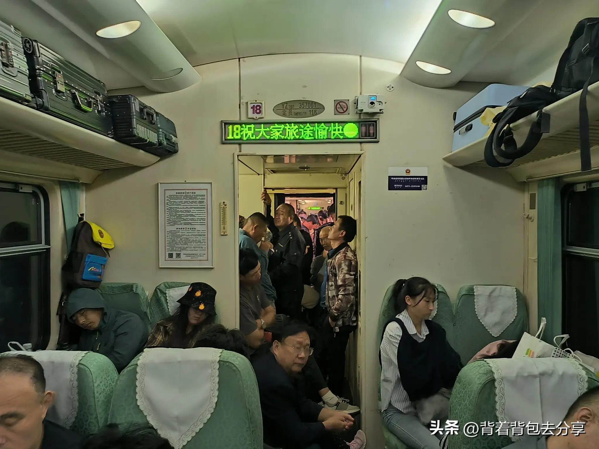 在家喫過晚飯,獨自一人前往兗州站,到站驗票之後,進入二樓候車廳,由於臨近國慶假期,大廳內的旅客也是非常的多,看到屏幕顯示,距離發車時間還有20分鐘,站在檢票口等待,這趟列車是有上海始發,終到呼和浩特Z268次,列車提前10分鐘檢票,之前,曾經坐過幾次這趟列車,也只這班車次,只有兩節硬座車廂,所說搞得硬座車票非常難買