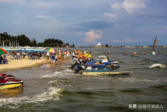 其次就是僑港海灘,這個海灘的名氣雖然沒有銀灘的名聲大,但是這裏也真的太適合遊客遊玩了,現在遊客也很喜歡這個地方。在這裏同樣是可以吹着海風,看着波濤洶湧的大海,也同樣有着各種各樣的遊樂設施,可以去體驗,當然也可以露營,看日出或者日落。唯一跟銀灘有所區別的就是在這邊美食真的是很多,這裏有一條美食街,比銀灘那邊的美食種類豐富了很多,這也是喫貨的天堂,所以僑港海灘既能看風景,又能品嚐到美食,真的是更令遊客嚮往。這裏的美食既有當地的特色美食,也有東南亞國家的美食更有全國各地的美食,相信總有一款美食是適合你喫的,總能讓人看了垂涎欲滴。所以很多來僑港海灘的遊客,除了是來看海或者是游泳以外,最重要的就是來品嚐這裏的美食。