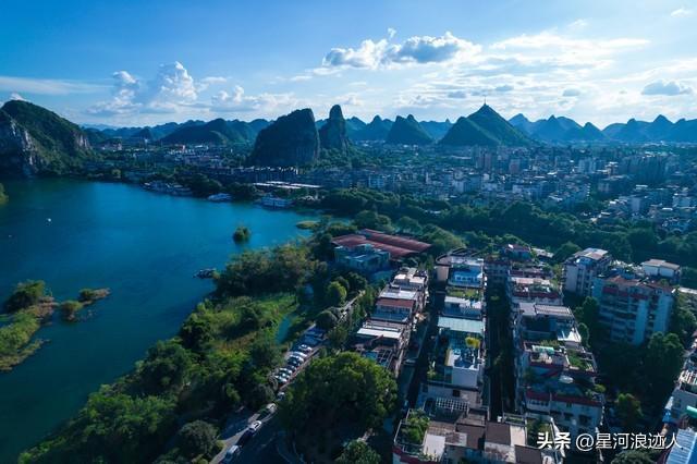 當你來到桂林市區後你會發現,這座城市幾乎都被羣山環繞着,而且有的房子旁邊就是山峯,這對於生活在平原的人來說,真的是很新奇的一件事,畢竟一出門或者是在家裏面就可以看到山峯了。而且在桂林的老城區,可以發現這邊的建築並不是很高,基本上跟山峯差不多,所以當你在象鼻山爬上山頂的時候,是可以俯瞰桂林市區的全景,站在高處看桂林市區又是一番不同的感受。在桂林市區內,有很多能夠打卡的地方。象鼻山日月塔就是很出名的著名景點,除了這些地方以外,還有很多公園也是非常值得去拍照打卡,桂林市區的整體建設還是可以的,依山而建,傍水而居。