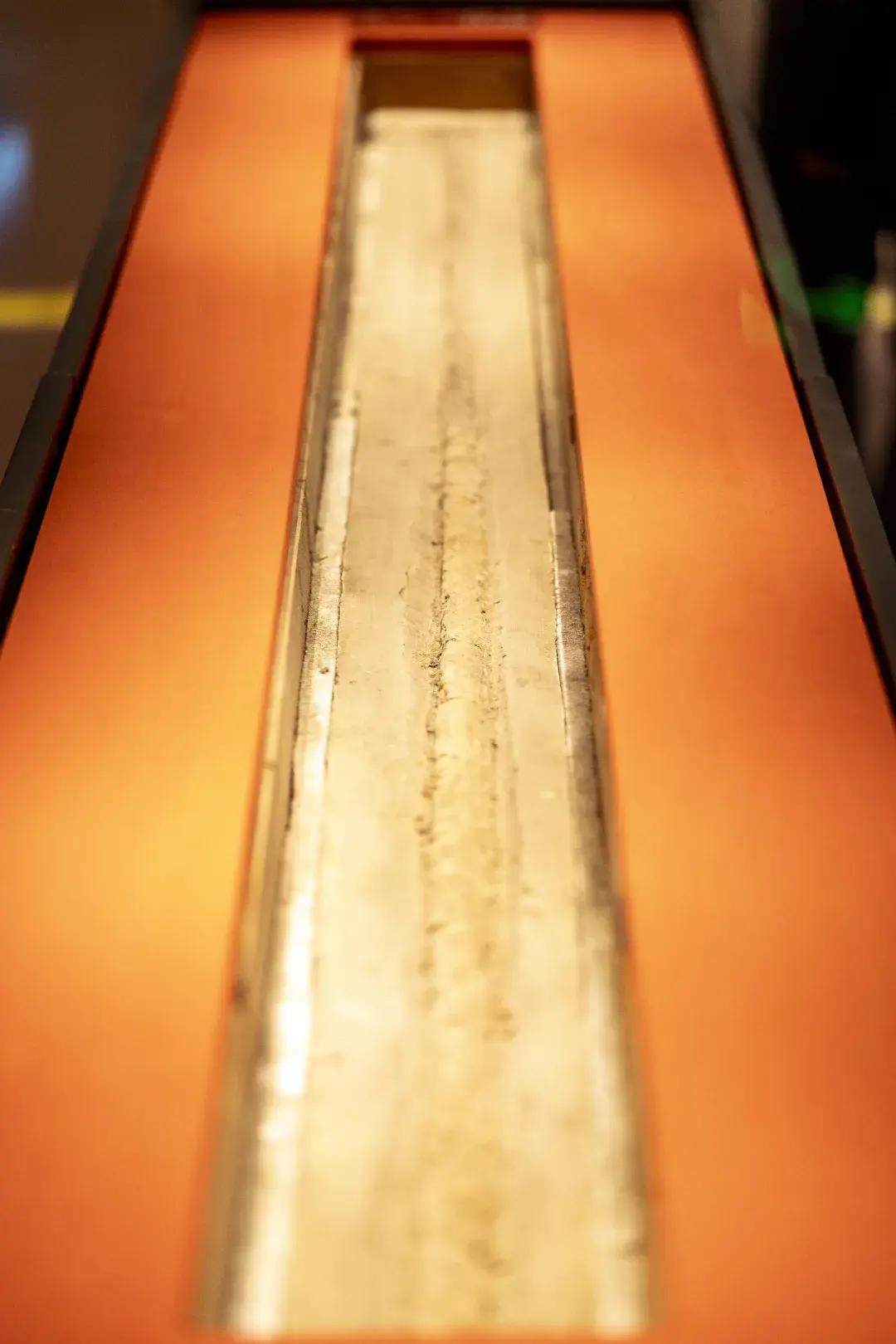 陶寺遺址核心文物圭尺首次公開展出,這是一件黑、綠、紅三色相間的漆木杆。