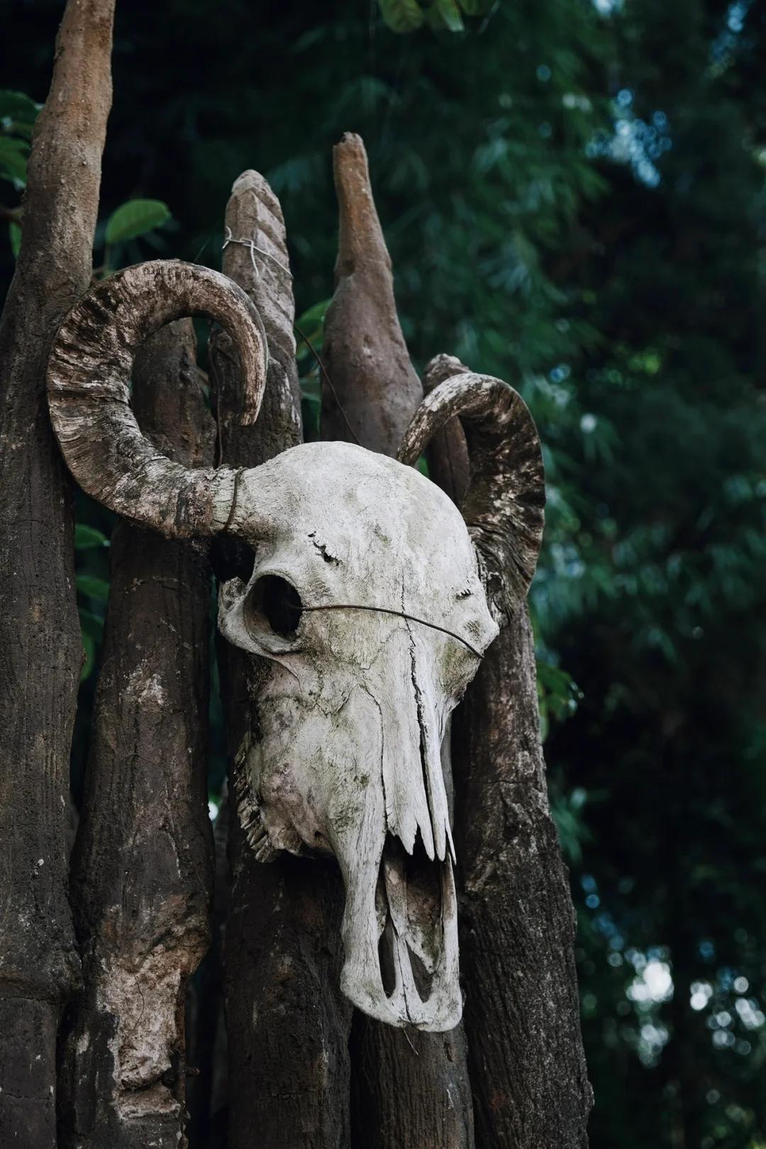 佤族人對牛和榕樹都非常崇拜,牛頭是佤族的圖騰信仰,而榕樹被稱爲神樹。村寨中有一片原始古樹林,在林中漫步時可見大量的牛頭懸掛在古樹上,給人以莊嚴肅穆之感。