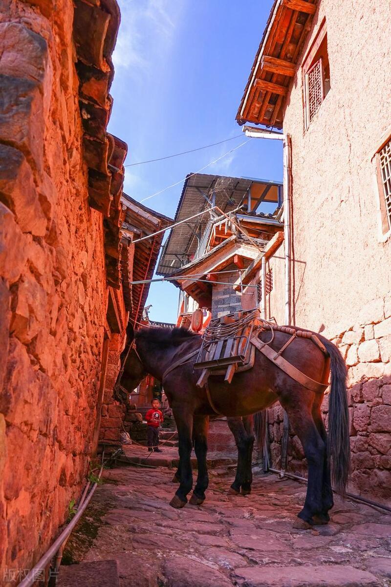 寨子最爲壯觀的,當屬那依山而建、連成一片的200多座土掌房,遠觀如城堡、似蜂巢。走進一看,極具納西建築特色,多爲三層結構,最底層養着牲畜,中間層是主屋,最頂層是臥室,屋頂則爲曬壩,晾曬着糧食。