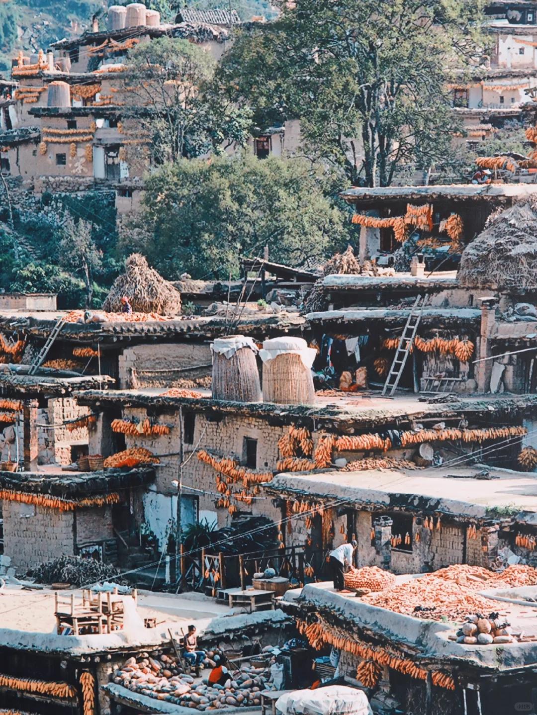 城子古村,至今已有600多年的歷史,由彝族傳統院澆式土掌房組成,遠遠望去,整個建築羣錯落有致,如堆疊齊整的蜂房,又如碩大無比的臺階。