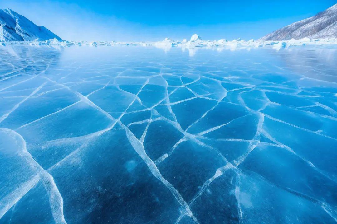 蔚藍的聖湖,被凝固成奇幻的藍冰