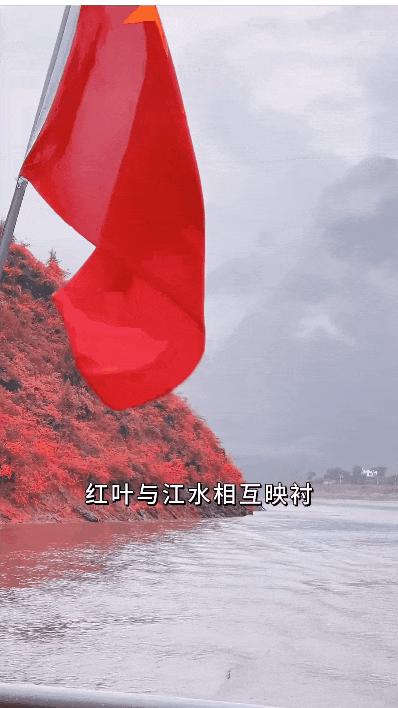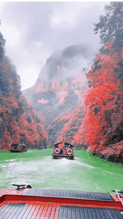 兩岸壁立千仞,紅葉漫漫,