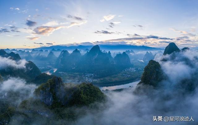 看灕江山水怎麼能錯過上帝的視角呢?如果你想看更美,更驚豔的山水,那就必須登高俯瞰,可以讓你更加享受山水之美!因爲這邊屬於喀斯特地貌,所以這邊的山特別的險峻,一定要去開發好的地方。最有名的就是相公山和老寨山,登上山頂可以俯瞰灕江,山水看着延綿不斷的山峯,那一刻你就會覺得這一切都非常值得,而灕江就猶如一條青龍盤旋在大山之間,美得讓人驚豔!