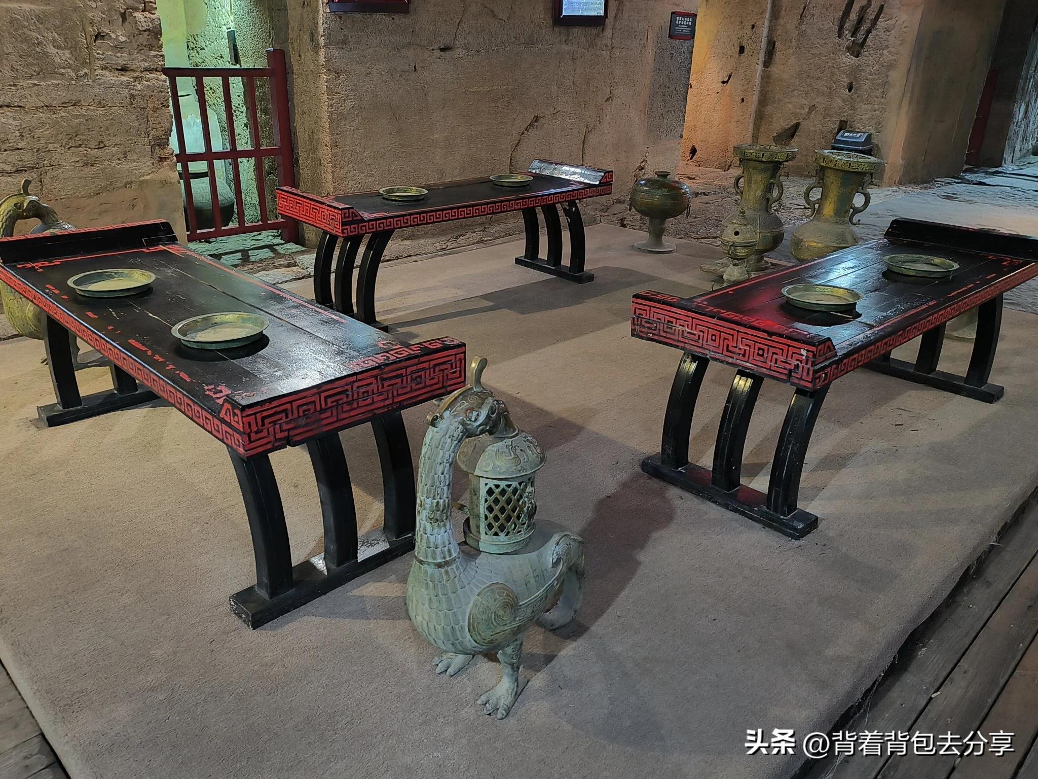 進入梁孝王王后陵,首先看到的是車馬室,在前庭北壁鑿有東西兩處,發掘現場清理出馬骨和銅馬銜,推測爲陪葬的車馬,繼續向前,來到了甬道,地宮內部有三段甬道,一直向下延伸,聽到石壁上方滴落的水聲,獨自一人走在陵墓中,心中有些膽怯,簡簡單單的看過一遍,墓室內棺牀室-貯冰室-浴室-廁間等