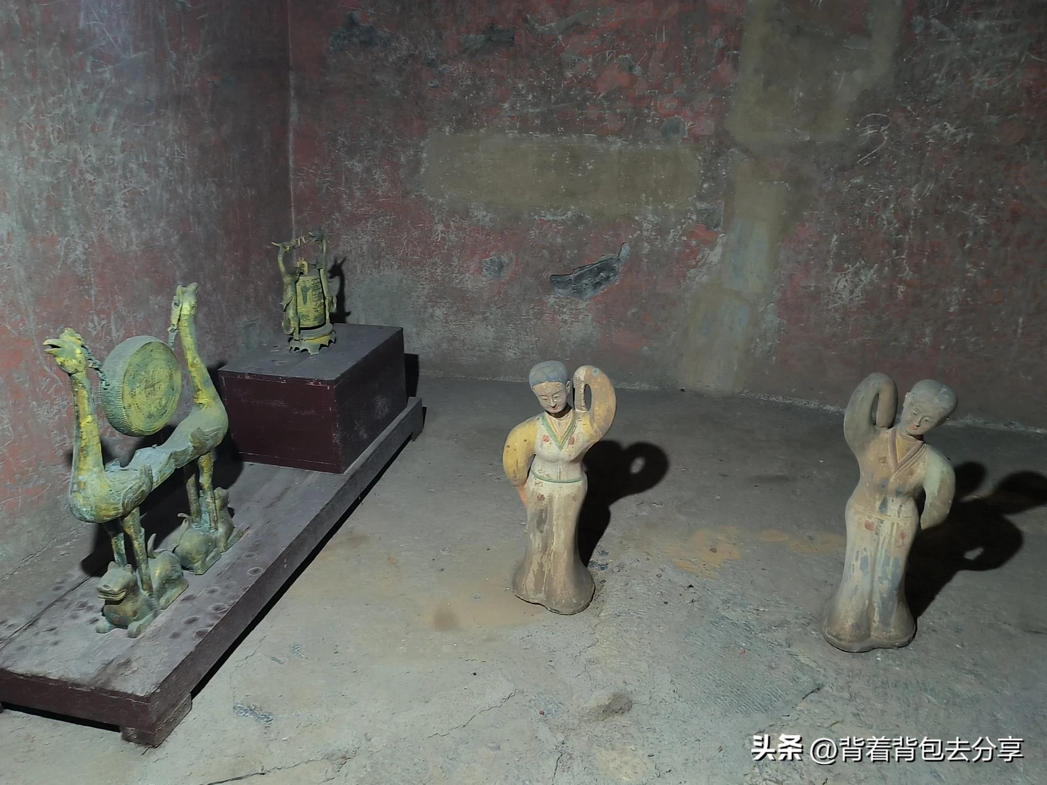 最後走到李王后的塑像,繞過迴廊,看到墓室後邊有條長長的甬道,遵照漢朝夫妻同冢異穴的習俗,爲了能在身後和丈夫團聚,王后讓工匠從自己的地宮中向梁孝王的地宮,開鑿了一條通道,誰料通道未成,李王后仙逝,通道成了絕無僅有的相思道,只留下了一段浪漫的愛情佳話,和一個貴族女性此恨無期的相思,在芒碭的山巒之中久久迴盪