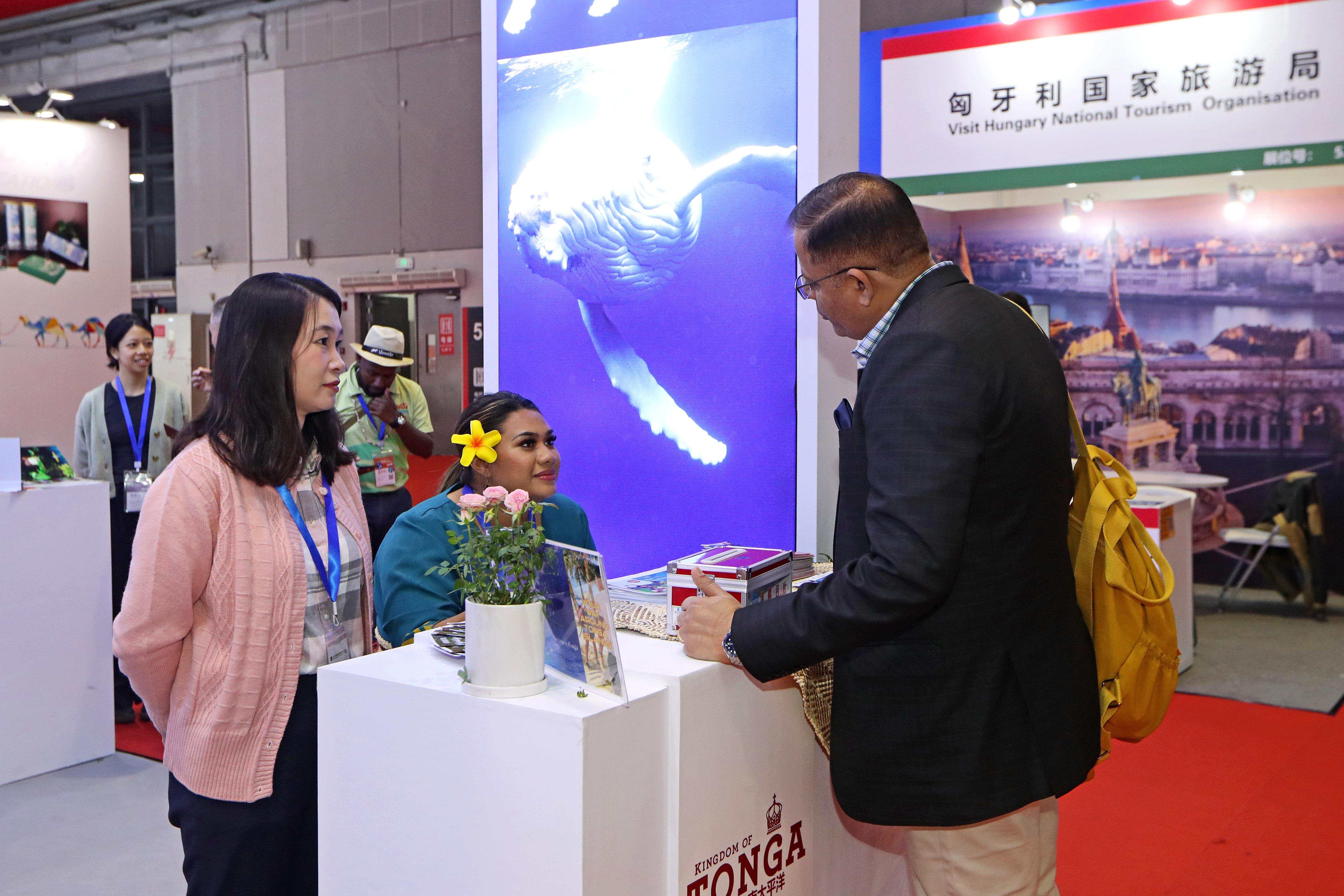 展商在南太平洋島國展臺交流洽談 中國旅遊報記者 陳晨 攝