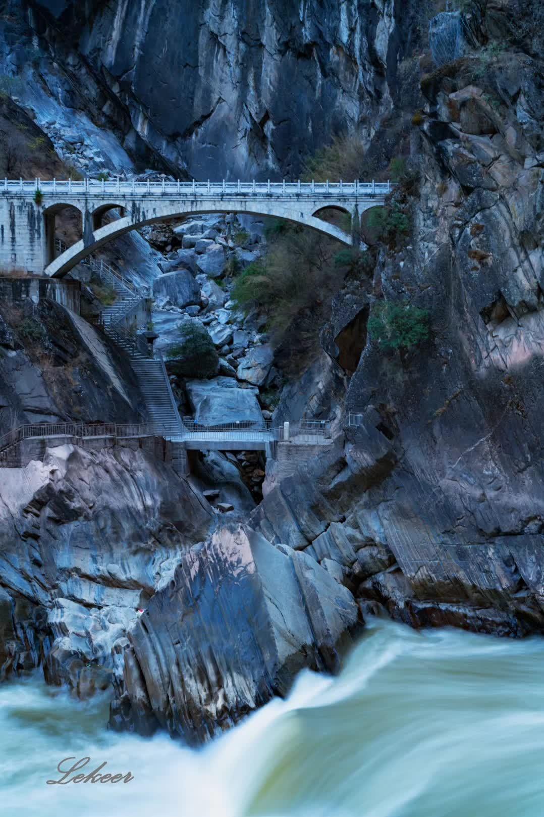 冰川融水又和大汽降水一起,匯聚成一條條河流,在臺階般的地形跌落成瀑布,沿着斷裂地帶向下切割出深深的峽谷地帶,其中最有氣勢當屬虎跳峽,這是世界最深峽谷之一。