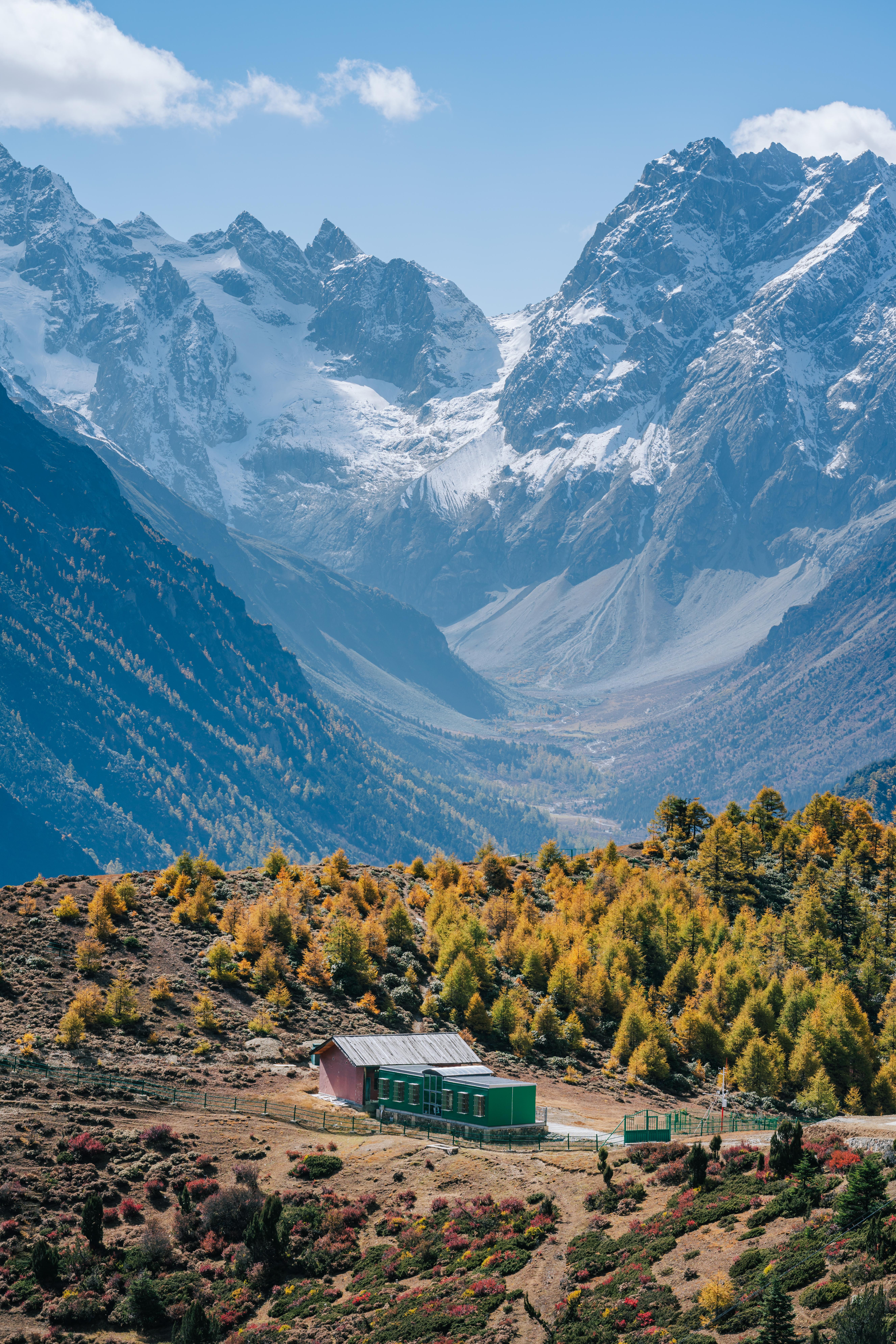 海拔4000以上,雪山冰川封凍了永恆的冬季,高寒草甸和灌叢錯落有致。