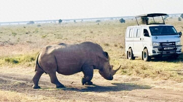 在肯尼亞內羅畢國家公園遊獵時可以看到各種具有代表性的非洲動物,圖爲犀牛。記者 何寧 攝