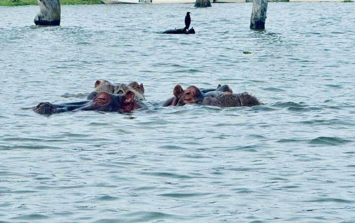 從湖邊的碼頭乘船前往新月島時,Cynthia一眼就看到了離岸邊不遠處隱藏的河馬。遠遠望去,水面上先是沉沉浮浮地冒出兩個小小的耳朵,然後是兩隻眼睛,再然後是棕灰色的半張河馬臉和鼻孔露出水面。有人想再走近些看看,Cynthia連連搖頭說,“這可不行,別看河馬外形憨厚,實際上脾氣非常暴躁,如果它感覺地盤受到威脅,攻擊性會變得非常強。”船行至湖中央,爲了讓我們更清楚地看到各種鳥,船工特意帶了一桶小魚。撒魚的瞬間,水面枯樹上水鳥四起,平靜的湖面瞬間被水波打破。“Look,鸕鷀、鵜鶘……”船工怕我們聽不懂這些鳥類的英文詞,熟練地說出了它們的中文名。看來,這裏確實來過不少中國遊客。